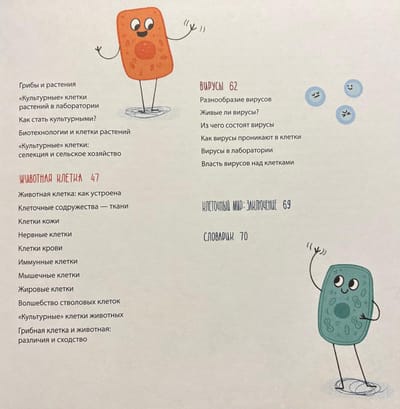 Uz šiem un daudziem citiem jautājumiem mēs atbildēsim šajā grāmatā. Mēs paskaidrosim, kā šūnas var būt draudzenes, ātri "peldēt", aizsargāt viena otru un pat apēst viena otru. Mēs arī izpētīsim "kultivētu" šūnu apbrīnojamo dzīvi un uzzināsim, kuras šūnas dzīvo vulkānos, kuras ir mūsu draudzenes un kuras vislabāk atstāt mierā.
