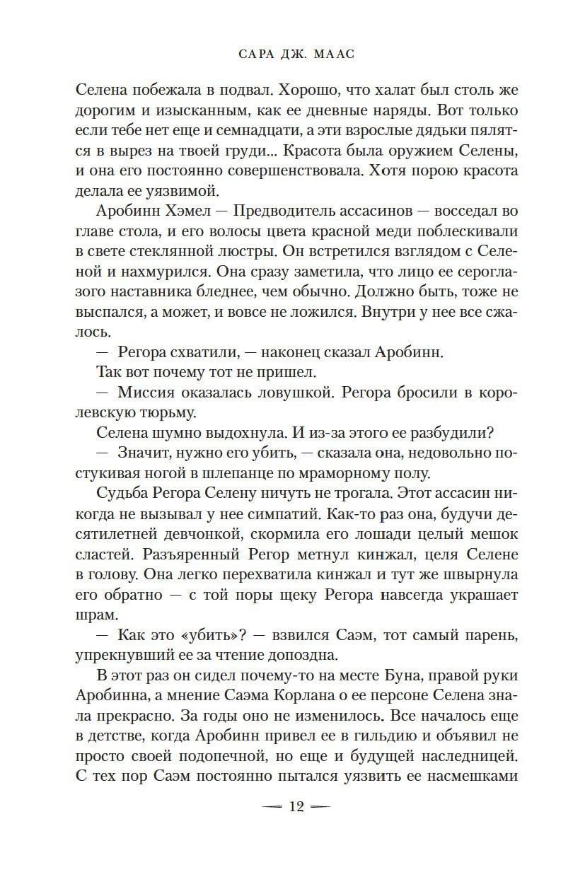 Ja esat lasījuši "Stikla troni", Sāras J. Māsas debijas grāmatu, jums nav jāiztēlojas viņas varone, astoņpadsmitgadīgā Selēna Sardotina, slavenākā slepkava visā Adarlanā. Šajā grāmatā jūs gaida viņas jauni piedzīvojumi - kopā ar Selēnu dosieties uz Skull Cove, pirātu pilsētu, nokļūsiet draudīgajā Sarkanajā tuksnesī, Kluso asasīnu cietoksnī, bēgsiet no vajāšanas tumšajos Raftholas, Adarlandes karaļvalsts galvaspilsētas, pagrīdē, cīnīsies nežēlīgā duelī ar noziedznieku līderi ... Un atceries - ja Selēna ir kopā ar tevi, tev ir izredzes uzvarēt, lai cik bīstamā ķibelītē tu būtu iekļuvis.