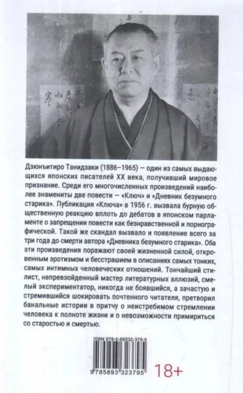 Tanizaki Džuničiro (1886–1965) ir viens no ievērojamākajiem 20. gadsimta japāņu rakstniekiem, kas guvis starptautisku atzinību. Starp viņa daudzajiem darbiem slavenākie ir divi romāni: "Atslēga" un "Trakā veca vīra dienasgrāmata". "Atslēgas" publicēšana 1956. gadā izraisīja vētrainu sabiedrības reakciju, izraisot debates Japānas parlamentā par romāna aizliegšanu kā amorālu un pornogrāfisku. Līdzīgs skandāls sekoja "Trakā veca vīra dienasgrāmatas" publicēšanai tikai trīs gadus pirms autora nāves. Abi šie darbi ir pārsteidzoši ar savu vitalitāti, atklāto erotiku un bezbailīgo vissmalkāko, intīmāko cilvēku attiecību attēlojumu. Smalks stilists, nepārspējams literāro alūziju meistars, drosmīgs eksperimentētājs, kurš nekad nebaidījās un bieži centās šokēt cienījamo lasītāju, banālus stāstus pārvērta par līdzību par cilvēka neizsakāmo vēlmi pēc pilnvērtīgas dzīves un neiespējamību samierināties ar vecumu un nāvi.