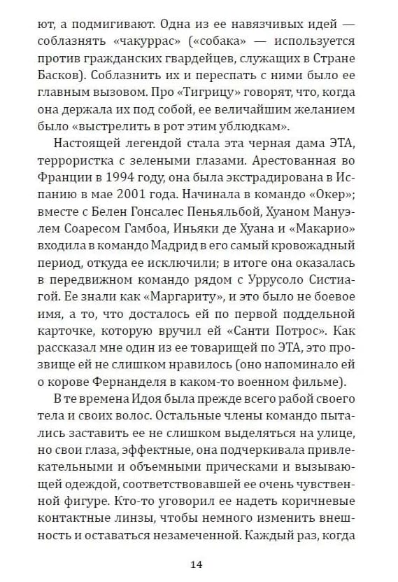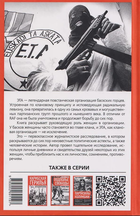 ETA ir leģendāra basku augstmaņu dumpinieku organizācija. Organizēta pēc klanu līnijām un atbalstot radikālu kreiso kustību, tā attīstījās par vienu no asiņainākajām un ietekmīgākajām partizānu grupām pagātnē un tagadnē. Atšķirībā no RAF, tā netika iznīcināta un turpina cīnīties līdz pat šai dienai. Šī grāmata atklāj sieviešu vadošo lomu organizācijā. Basku vidū sievietes bieži kļūst par klanu vadītājām, un ETA kā klanu organizācijā dominēja sievietes vadītājas. Šī ir pirmklasīga pētnieciskā žurnālistika, kas atklāj gan iepriekš nezināmus politiskos aspektus, gan cilvēku stāstus. Autore veica rūpīgu izpēti, izmantojot dažu šo sieviešu personīgās dienasgrāmatas un draugu liecības, lai mūs tuvinātu viņu personībām, šaubām un pretrunām.