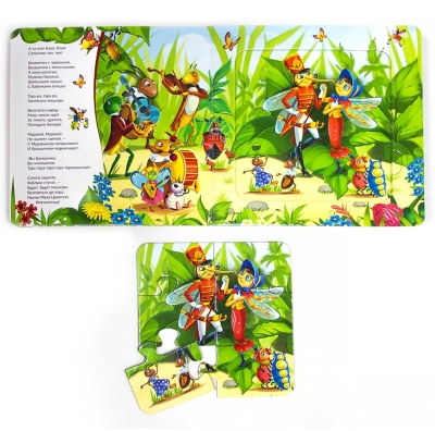 Ar šo grāmatu sēriju jūsu bērns apgūs dzejoļus un bērnu dziesmiņas, lasīs pamācošus stāstus, iemācīsies jautras dziesmas un pat saliks krāsainu puzli uz katra atvēruma. Grāmatā ir 5 puzles, katrā no tām ir 6 lieli gabaliņi, un spilgti attēli ar norādēm apakšā.