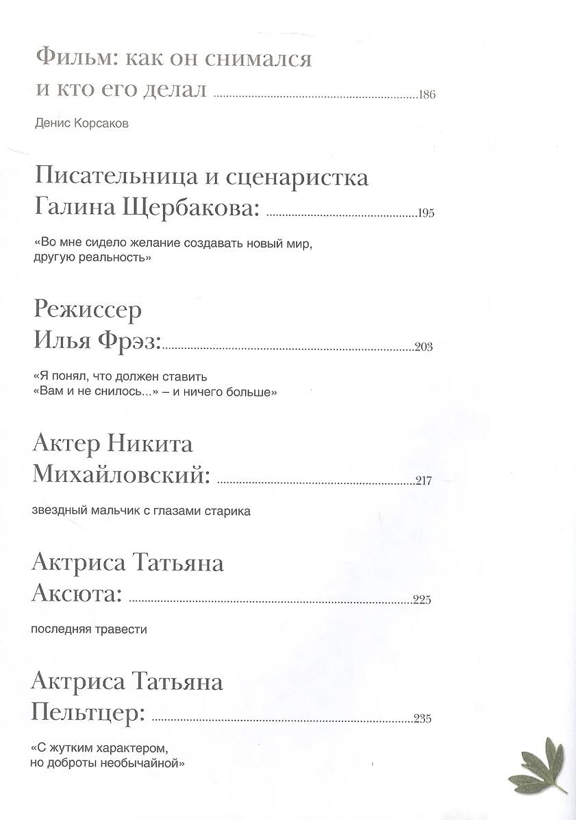 "Tu nekad neesi sapņojis..." Gaļina Ščerbakova ir pīrsinga stāsts par pusaudžu mīlestību, kas pārvērtās par vienu no maģiskākajām melodrām padomju un pasaules kino vēsturē. Šajā grāmatā stāsts pats un laikmeta stāsts, kad tas tika izdots. Iegremdēšana 80. gadu sākumā, pārsteidzošs un neaizmirstams, sarežģīts, kritisks, skaists, kad biļetes uz kino maksāja 50 centus, un par labām grāmatām. Un, pats galvenais, par tiem, kas piedalījās filmas tapšanā: par scenāristu, režisoru un aktieriem, no kuriem nav iespējams novilkt acis 45 gadus - candid stāsti, neticami personisku sižetu vijumi. Īsta kulta stāstu un filmu enciklopēdija. Grāmata par mīlestību un jaunību ir lieliska dāvana visiem, kas ar prieku atceras pagātni un augstu vērtē tagadējo laiku, kvalitāti un jūtas.