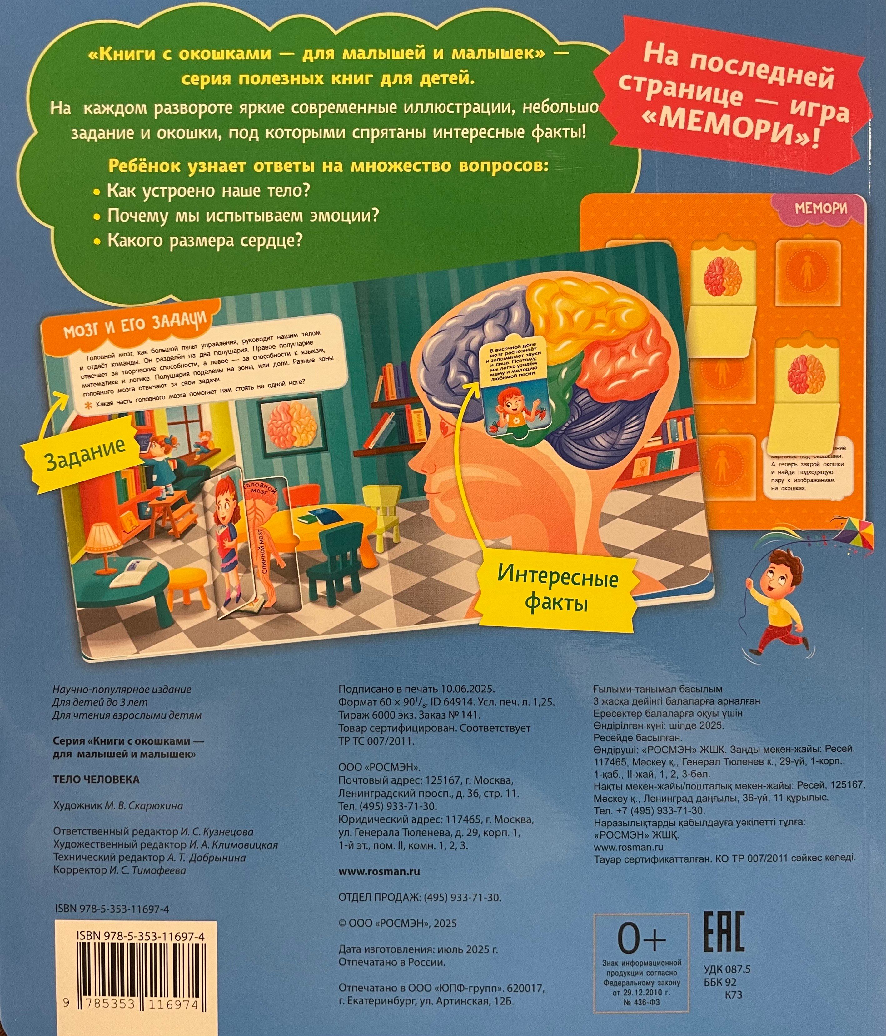 "Grāmatas ar logiem mazuļiem un maziem bērniem" ir noderīgu bērnu grāmatu sērija. Katrā atvērumā ir spilgtas, modernas ilustrācijas, īsa aktivitāte un logi ar paslēptiem interesantiem faktiem! Jūsu bērns uzzinās par cilvēka ķermeņa uzbūvi un atklās atbildes uz daudziem jautājumiem: Cik kaulu ir cilvēkam? Kāpēc mums ir skelets? Kāpēc mēs šķaudām?
