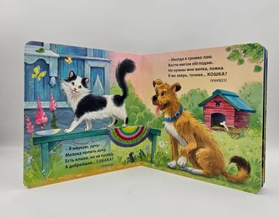 Grāmatu kartīte "Domestiskie dzīvnieki". Jevgeņijs Sosnovskis iepazīstinās bērnu ar mājdzīvniekiem ar maldināšanas mīklu palīdzību.