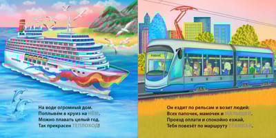Grāmatu karte “Technique” Jevgeņija Sosnovska dzejoļos iepazīstinās savu bērnu ar dažādiem transporta veidiem.