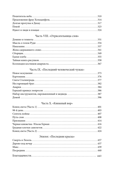 Nāve un Līzela tiksies trīs reizes. Viņu tikšanās notiek vilciena vagonā, steidzinot meiteni un viņas jaunāko brāli satikt savus adoptētājus. Brālis paliks baltajā kapā, un Līzela nozags savu pirmo grāmatu no sniega. 1939 gads. Kamēr Vācijā valda nemieri, grāmatu zaglis mācās lasīt. Dažus gadus vēlāk viņa uzrakstīja savu stāstu par savu tēti ar akordeonu, citronmataino zēnu kaimiņos un ebreju, kas viņu pagrabā cīnās ar Hitleru. Nāve no kara drupām paņems melnu grāmatu un pastāstīs par Līzelas Memingeres dzīvi.