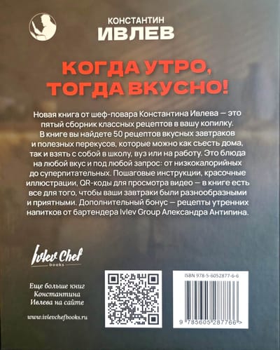 Šajā grāmatā ir 50 gardas brokastu un veselīgu uzkodu receptes, ko varat baudīt mājās vai ņemt līdzi uz skolu, koledžu vai darbu. Šie ēdieni ir piemēroti ikvienai gaumei un vajadzībām, sākot no mazkaloriju ēdieniem līdz īpaši barojošiem. Ar soli pa solim sniegtām instrukcijām, krāsainām ilustrācijām un QR kodiem video skatīšanai šajā grāmatā ir viss nepieciešamais, lai jūsu brokastis būtu daudzveidīgas un baudāmas. Papildu bonuss ir rīta dzērienu receptes no Ivlev Group bārmeņa Aleksandra Antipina.