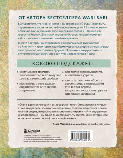 "Kokoro" ir grāmata tiem, kas tiecas pēc maigām, bet dziļām pārmaiņām, kas vēlas smalki noskaņot savu dzīvi uz miera, laimes un iekšējās labsajūtas viļņa.