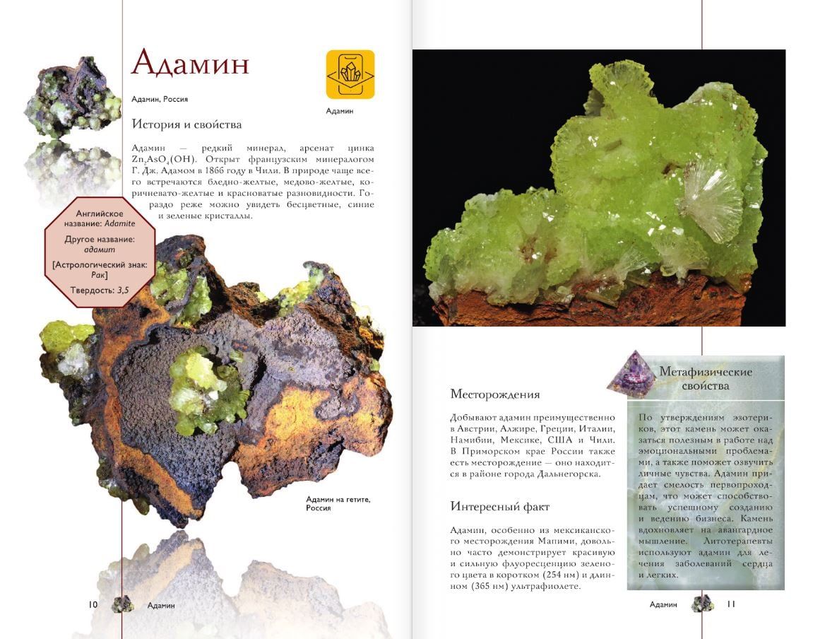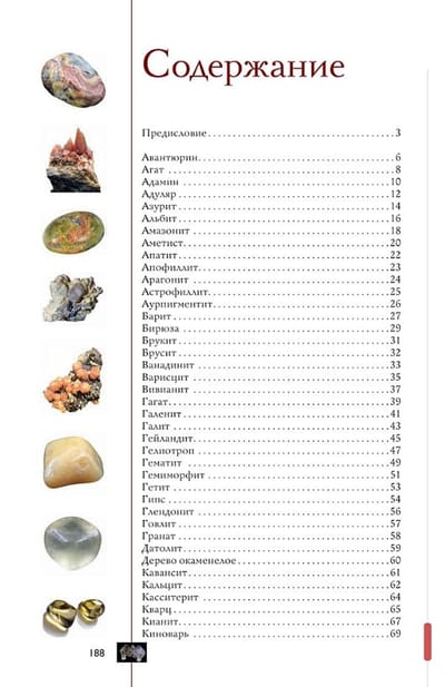 Šis ilustrētais ceļvedis iepazīstinās jūs ar vairuma kolekcionējamo minerālu vēsturi un īpašībām. Tā lappusēs atradīsiet informāciju par to nosaukumiem, cietību, izcelsmi un metafiziskajām īpašībām. Sertificēts gemologs un Krievijas Mineraloģijas biedrības biedrs Aleksejs Lagutenkovs dalās ar daudziem interesantiem faktiem par minerāliem un paskaidro, kā izveidot savu unikālo kolekciju.