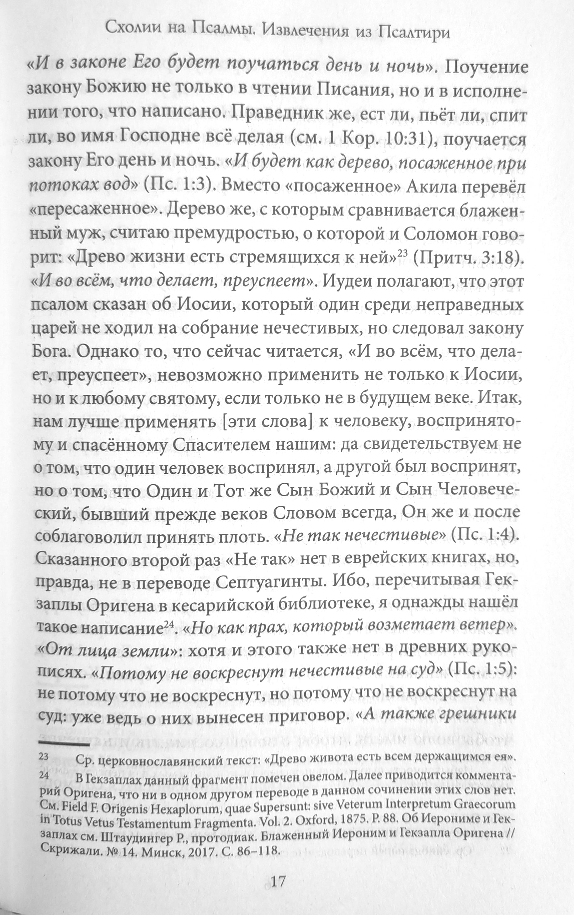 Grāmatā ir iekļauti svētīgā Stridonas Hieronima komentāri par Psalmu grāmatas "Scholia on the Psalms" pantiem, kā arī četras viņa vēstules, kurās interpretēti daži psalmi un tajos atrodamie izteicieni, tostarp skaidrojums par atšķirībām starp ebreju tekstu un Septuagintu. Lai labāk izprastu šos darbus, ir sniegtas vēstuļu saņēmēju biogrāfijas un īss pašu vēstījumu apraksts. Tulkojumos ir saglabātas latīņu oriģināla iezīmes. Zemsvītras piezīmēs ir paskaidrotas vietas, kas varētu radīt jautājumus. Grāmata būs interesanta speciālistiem un noderīga plašam lasītāju lokam.
