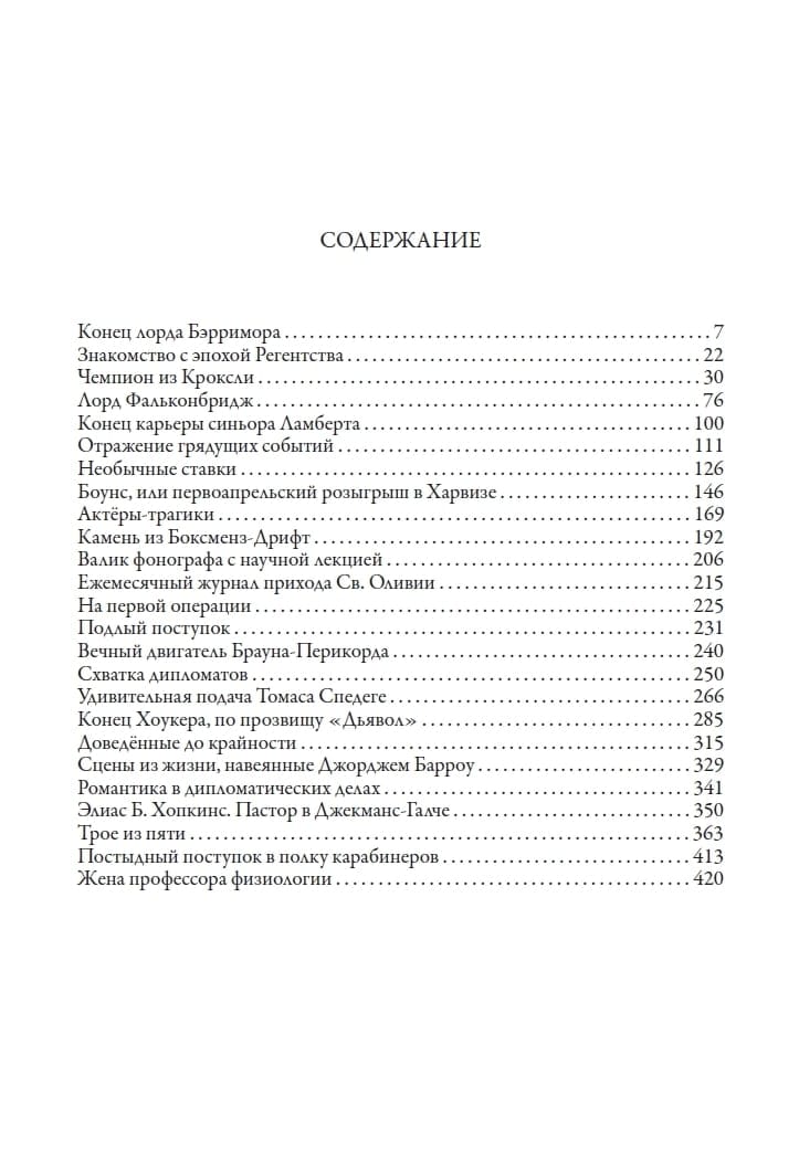 Artura Konana Doila mīlestību pret literatūru viņā jau no bērnības ieaudzināja viņa māte – simtiem vēstuļu viņai viņš pieslīpēja savu stilu. Jezuītu koledžā Stonyhurst ap jauno Doilu vienmēr pulcējās entuziasma pilnu klausītāju grupa — Artūrs viegli improvizēja, lidojuma laikā izveidojot vēl vienu intriģējošu stāstu. 1881. gadā Doils pabeidza Edinburgas universitātes medicīnas fakultāti un drīz vien atvēra privātpraksi Portsmutā, taču jaunajam ārstam bija maz pacientu. Pavadot laiku un cenšoties uzlabot savu finansiālo stāvokli, Doils nolēma nopietni pievērsties literatūrai. Un viņam bija taisnība! Arturs Konans Doils uz visiem laikiem paliks vēsturē kā asprātīgā detektīva Šerloka Holmsa nemirstīgā tēla veidotājs. Taču rakstnieka literārais mantojums ir daudz plašāks nekā “Holmesiana”, kas aizsākās 1886. gadā ar stāstu “Study in Scarlet”. Doils uzskatīja, ka viņa patiesais aicinājums ir vēsturiskie romāni. Viņš uzrakstīja romānu "Izraidītie", kurā aprakstīti notikumi Francijā 17. gadsimta beigās. Savu romānu "Baltā kompānija" Doils veltīja Simtgadu kara notikumiem. Viņa romāna “Mikas Klārka piedzīvojumi” darbība norisinās karaļa Džeimsa II gāšanas laikā. Citu Doila literāro darbu tematika ir diezgan daudzveidīga. Viņš rakstīja par sociālām un ikdienas tēmām un godināja zinātnisko fantastiku. Dzīves otrajā pusē Doils sāka interesēties par mistiku, un šis motīvs rakstnieku nepameta līdz pat savu dienu beigām. Šajā grāmatā iekļautajos stāstos Doils demonstrē savu neizsīkstošo izgudrotāja talantu. Šo literāro miniatūru tēmas ir derības, ekscentriskums, praktiski joki un maldināšana. Pirmajā krājuma stāstā ir aprakstīts, kā lords Berimors, pateicoties talantīgai palaidnībai, kļuva par visas pilsētas apsmieklu. Stāsts "Sinjora Lamberta karjeras beigas" stāsta par izsmalcinātāko atriebību pasaulē. Ar burvju mākslinieka veiklību Doils izmet no galvas vienu sižetu smieklīgāku par otru. Piemēram, viņš stāsta par neticamajām sekām, kādas var rasties, nomainot vienu ieraksta cilindru fonogrāfā ar citu, vai par to, kā divu pavadoņu izgudrotā mūžīgā kustība palīdz atbrīvoties no līķa. Izlasot stāstu “Apkaunojoša rīcība karabinieru pulkā”, jūs uzzināsit, kāpēc majors Eringtons spītīgi mēģināja zaudēt sev kārtis. Katrs kolekcijas stāsts pārsteidz ar neparastu sižeta pavērsienu. Izdevumu rotā vairāku mākslinieku zīmējumi, kuri ilustrēja Doila stāstus, kas 19. gadsimta beigās un 20. gadsimta sākumā parādījās dažādu periodisko izdevumu lappusēs. Pateicoties šīm ilustrācijām, mēs varam paskatīties uz Konana Doila stāstiem ar viņa laikabiedru acīm.