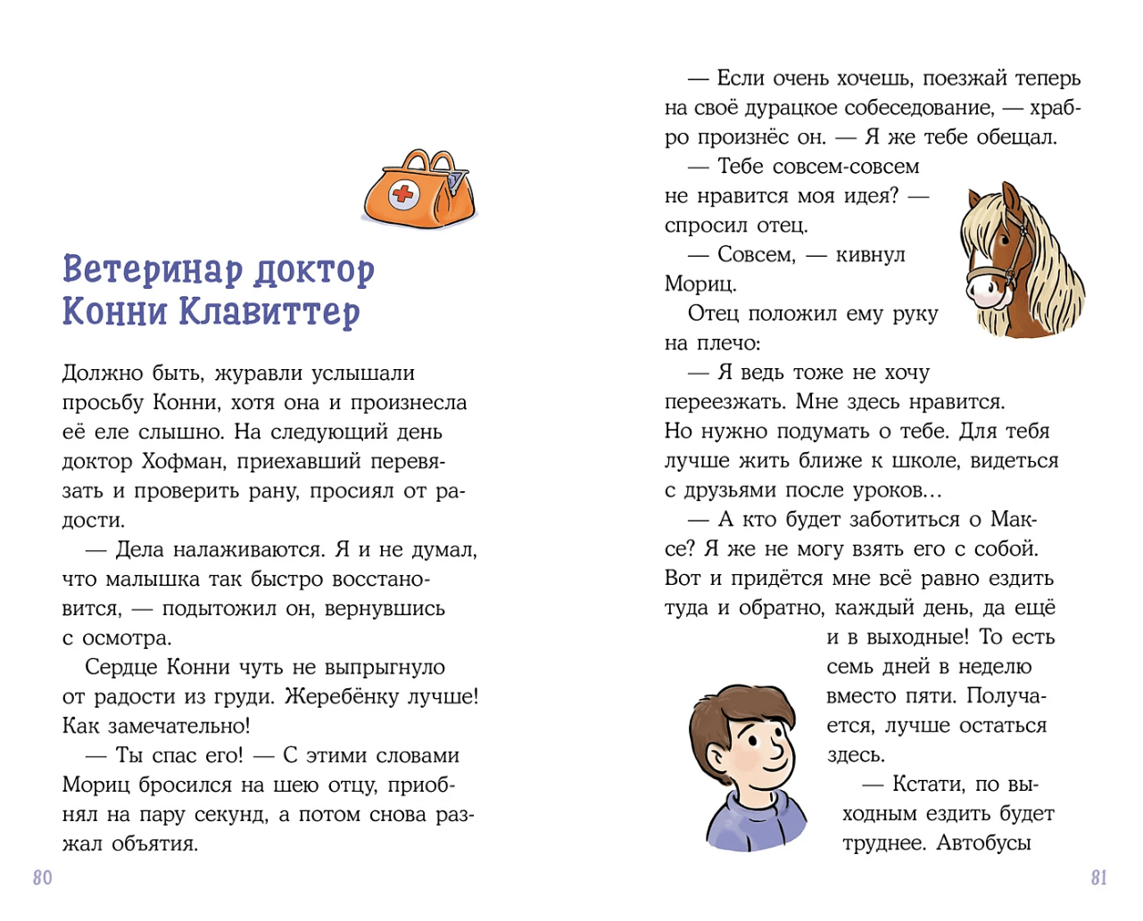 Konija ar nepacietību gaida brīvdienas, jo viņa atkal dosies uz staļļiem. Tur viņu gaida pārsteigums. Rezervātā, netālu no staļļiem, atrodas savvaļas zirgu bars. Dzīvnieki ir ļoti kautrīgi un dzīvo neatkarīgi no cilvēkiem. Bet, kad Konija un viņas draugi pamana, ka viens no kumeļiem ir ievainots, viņiem kļūst skaidrs: viņam noteikti ir vajadzīga palīdzība!