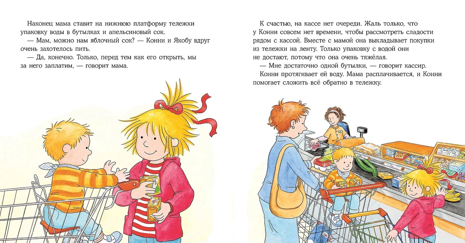 Konija kopā ar māti sastāda iepirkumu sarakstu, lielveikalā sver dārzeņus un augļus, palīdz nolikt pirkumus pie kases un var pat aizskriet uz tuvējo veikalu pēc maizes. Un rezultātā viņa jūtas pieaugusi un neatkarīga - lielisks rezultāts.