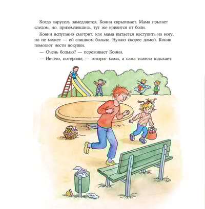 Visas 20 gadus bērni visā pasaulē ir auguši kopā ar Connie. Ar šīm grāmatām bērns pārstās baidīties no ārsta, pirmās dienas bērnudārzā vai skolā un sapratīs, ka dzīvnieku turēšana mājās ir liela atbildība. Sērija aptver visas dzīves prasmes, ar kurām bērns saskaras, augot no 3 līdz 14 gadu vecumam. Sasaistoties ar galveno varoni, bērns izdzīvo viņas stāstu, mācās un iepazīst pasauli. Par ko ir grāmata Šī grāmata māca rīkoties patstāvīgi un rūpēties par tuviniekiem. Kad Konijas mamma viņai uzvelk kāju, meitenei ir iespēja pierādīt, ka viņa ir liela un patstāvīga! Šeit Konnija pirmo reizi pati dodas uz bērnudārzu, pati gatavo pusdienas un uzkopj māju. Gluži kā pieaugušā. Kopā ar galveno varoni bērni mācīsies, kā sniegt pirmo palīdzību, kā nokļūt pie ārsta un izsaukt taksometru. Pēc šī stāsta bērns noteikti nebūs apjucis, ja viņa tuviniekiem būs nepieciešama medicīniskā palīdzība. Ceļvedis vecākiem jeb ko jūs varat darīt ar šo grāmatu Attīstīt dzīvesprasmes Grāmata iemācīs bērnam būt patstāvīgam.