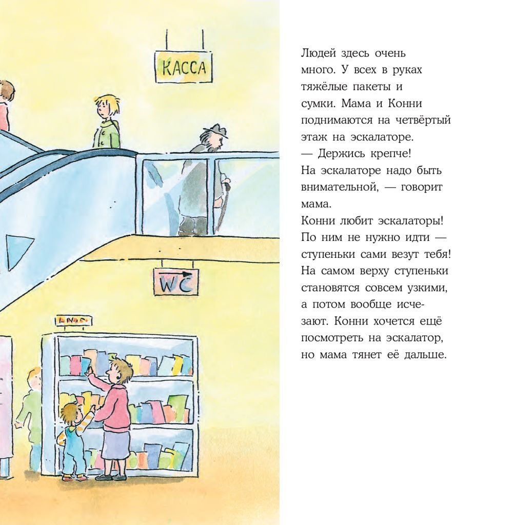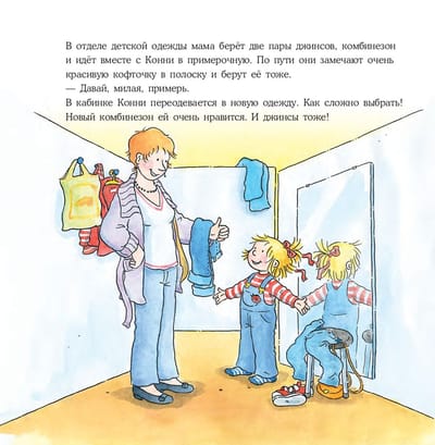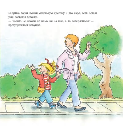 Jau 20 gadus bērni visā pasaulē aug kopā ar Connie. Ar šīm grāmatām bērns pārstās baidīties no ārsta, pirmās dienas bērnudārzā vai skolā un sapratīs, ka dzīvnieku turēšana mājās ir liela atbildība. Sērija aptver visas dzīves prasmes, ar kurām bērns saskaras, augot no 3 līdz 14 gadu vecumam. Sasaistoties ar galveno varoni, mazulis izdzīvo viņas stāstu, mācās un iepazīst pasauli. Par ko ir grāmataVai pat pieaugušais, kas viens pats nokļuvis nepazīstamā vietā, nevar uzreiz saprast, ko darīt. Ko gan var teikt par maziem bērniem! Konija ir nonākusi nelaimē: viņa ir apmaldījusies lielā apģērbu veikalā un ilgi nevar atrast savu mammu. Kā rīkoties lielos iepirkšanās centros? Kāpēc ir svarīgi atcerēties savu un savu vecāku vārdus? Un kā neapjukt, ja tomēr apmaldies? Par to visu varēsiet parunāt ar savu mazo pēc tam, kad izlasīsiet nākamo stāstu par Konijas piedzīvojumiem.