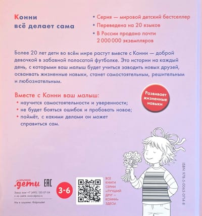 Konnija jau ir liela un var daudz ko paveikt pati! Viņa pati ģērbjas, gatavo brokastis, apmeklē pirmsskolu, skaita, zīmē un palīdz mammai iepirkties. Dažreiz viņa ne visu izdara perfekti, bet Konnija nekad nepadodas! Šī grāmata māca bērniem nebaidīties no kļūdām, attīsta pašapziņu un mudina viņus izmēģināt jaunas lietas.