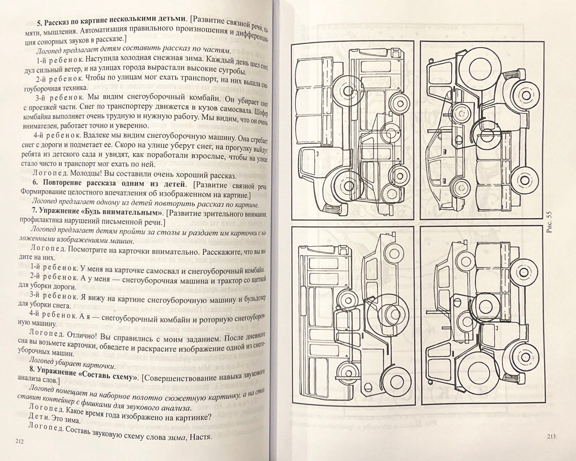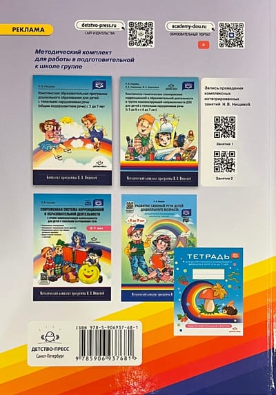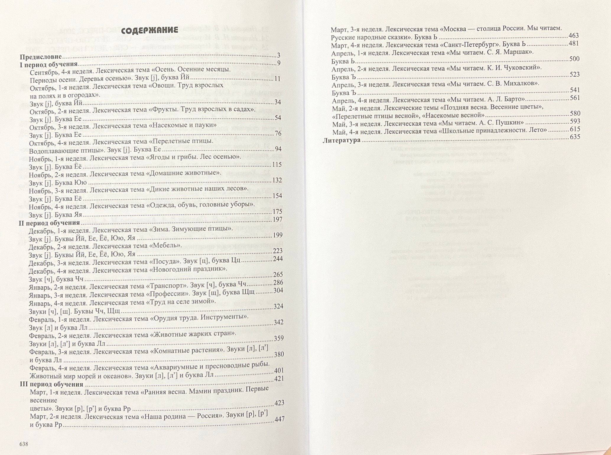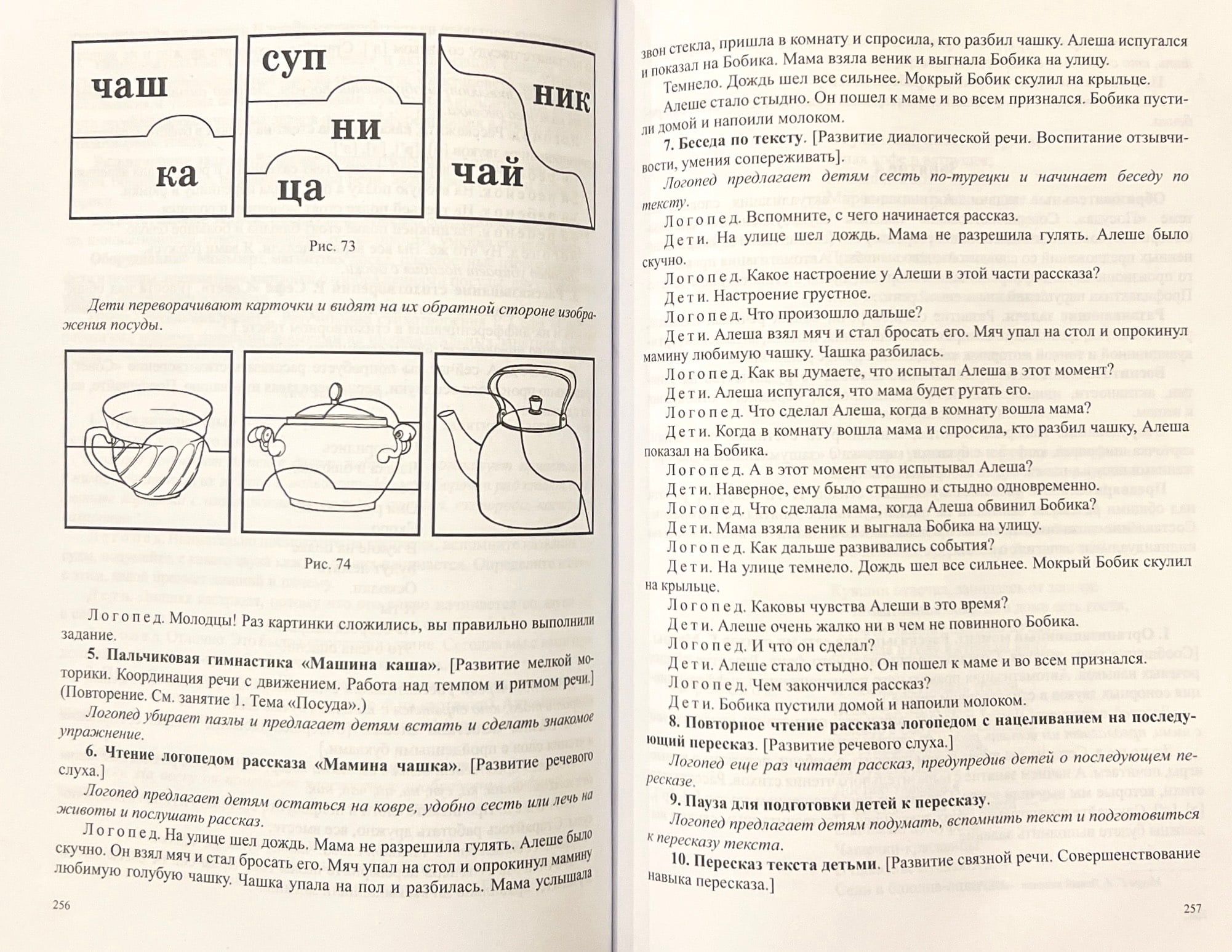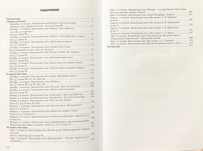. Katra nodarbība sastāv no desmit posmiem: spēles, uzdevumi un vingrinājumi vispārējo runas prasmju attīstīšanai, dzirdes un redzes uzmanības un uztveres, valodas leksiskā sastāva un runas gramatiskās uzbūves veidošanai un pilnveidošanai, saistītās runas un runas komunikācijas attīstīšanai, fonemātiskajiem jēdzieniem un skaņu analīzes un sintēzes prasmēm, mīmikas, artikulācijas, sīkās, vispārējās motorikas utt.