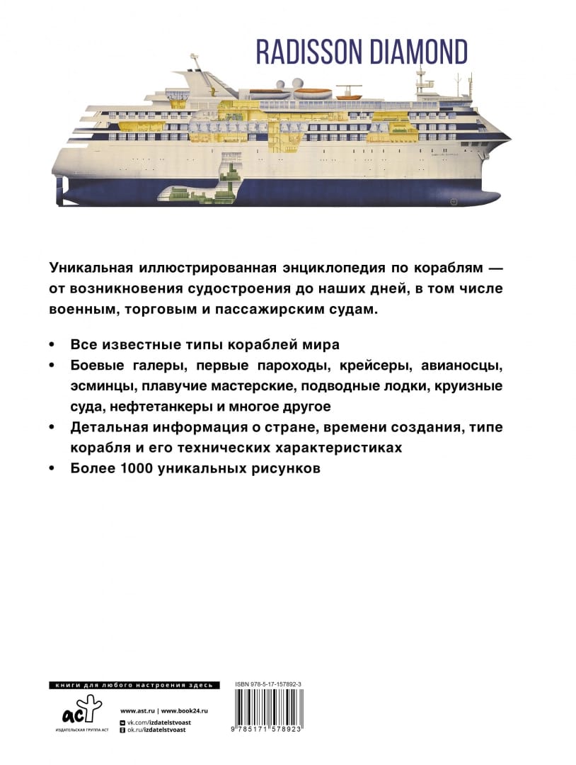 Šis ir unikāls ceļvedis par kuģiem un zemūdenēm, tostarp militārajiem, tirdzniecības un pasažieru kuģiem, no kuģu būves pirmsākumiem līdz mūsdienām. Grāmatā aplūkoti visi zināmie pasaules kuģu un zemūdeņu tipi. Simts krāsainiem zīmējumiem pievienota detalizēta informācija par valsti, izveidošanas laiku, kuģa tipu un tehniskajiem parametriem.