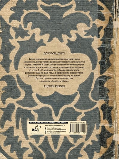 Andrejs Kņazevs - viens no leģendārās Sanktpēterburgas rokgrupas "King and Shout" līderiem, mūzikas un visu tekstu autors, kā arī kolektīva albumu dizaina autors, kurš tagad vada savu grupu "Knyazz", nolēma dalīties ar faniem ar saviem vecajiem melnrakstiem. Radītāja personīgās telpas burvība, iemīļoto tekstu pirmās versijas, skices - tas viss būs pieejams ar roku rakstīto lapu tiešajās kopijās, kuras Endrjū personīgi apkopojis grāmatā.