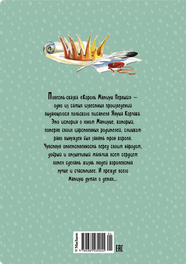 Janušs Korčaks (Janusz Korczak, 1878-1942) bija ievērojams poļu ārsts, pedagogs un rakstnieks, kurš visu savu dzīvi veltīja citu cilvēku bērniem. Viņš Varšavā atvēra bāreņu namu, kurā dzīvoja, mācījās un audzināja bērnus, kas bija zaudējuši vecākus. Nodzīvojis cieņas cienīgu dzīvi, Janušs Korčaks nomira kā varonis - Otrā pasaules kara laikā viņš gāja bojā koncentrācijas nometnē kopā ar saviem mazajiem audzēkņiem, atsakoties no piedāvātās brīvības. Viens no slavenākajiem rakstnieka darbiem ir stāsts "Karalis Matjušs Pirmais". Tas ir stāsts par jauno Matjušu, kurš, agri zaudējis vecākus, bija spiests ieņemt karaļa troni. Izjūtot atbildību pret savu tautu, Matiuszs, labsirdīgs un līdzjūtīgs zēns, no visas sirds vēlējās uzlabot savas karaļvalsts cilvēku dzīvi. Visvairāk viņš domāja par saviem bērniem. Bet cik daudz grūtību un vilšanās viņu gaidīja šajā grūtajā, bet cēlajā ceļā!