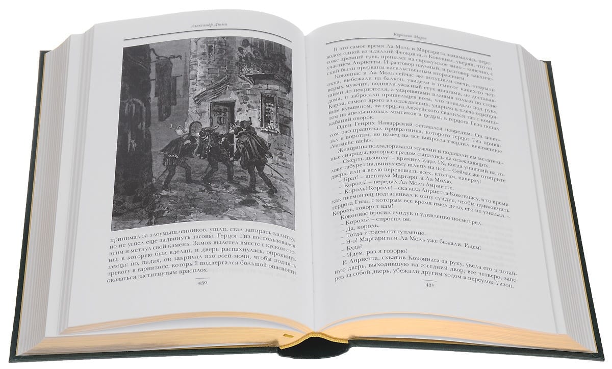 Stilīgi noformēts dāvanu izdevums ādas iesējumā ar zelta reljefu uz vāka, trīspusīgu zelta apdari un zīda lasu. "Neviens nav izlasījis visus Dumas darbus, bet visa pasaule ir lasījusi Dumas," atzīmēja Andrē Moroī. Aleksandrs Dumas iekaroja literāro Parnasu, kur atradās Viktors Hugo, Musē, Vīni, Gotjē, Žorža Sand, Ežēns Sjū, Stendāls, Balzaks - XIX gadsimta franču literatūras kolorīts. Viņa talanta valdzinājums aizrāva gan lasītājus, gan kritiķus, gan izdevējus. Kopš 1996. gada izdevniecība "Intrade Corporation" izdod A. Dumas romānu sēriju. Tā ir izdevusi jau vairāk nekā 50 sējumus ar slavenā autora populārākajiem darbiem. Šajā sējumā izdevniecība piedāvā jums vienu no iemīļotākajiem A. Dumas romāniem "Karaliene Margo" jaunā izdevumā. Atšķirībā no 1996. gadā publicētā izdevuma šajā izdevumā ir aptuveni 200 vēl interesantāku jaunu ilustrāciju. Gandrīz visas no tām krievu lasītāji varēs redzēt pirmo reizi. Lasītājus valdzinās galvu reibinošo intrigu virtuozitāte un spožums, varoņu ugunīgais temperaments, raksturu dažādība un niknums.