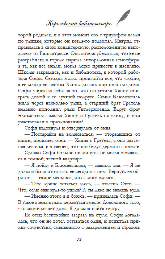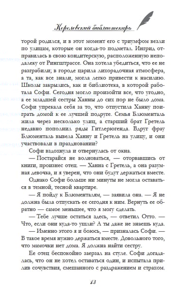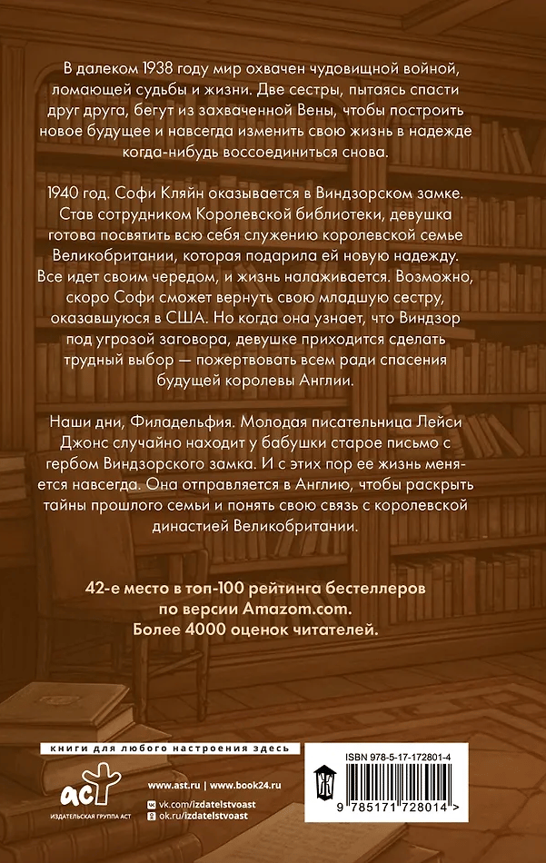 1940. gads. Sofija Kleina nonāk Vindzoras pilī. Kļuvusi par Karaliskās bibliotēkas darbinieci, meitene ir gatava pilnībā veltīt sevi Lielbritānijas karaliskās ģimenes kalpošanai, kas viņai deva jaunu cerību. Viss turpinās kā parasti, un dzīve kļūst labāka. Varbūt drīz Sofija varēs atgriezt savu jaunāko māsu, kura nonāca Amerikas Savienotajās Valstīs. Bet, kad viņa uzzina, ka Vindzorai draud sazvērestība, meitenei jāizdara grūta izvēle - upurēt visu, lai glābtu topošo Anglijas karalieni.