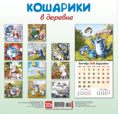 Sienas kalendārs "Kaķi ciematā" 2026. gadam ir labākais veids, kā iegūt labu garastāvokli.