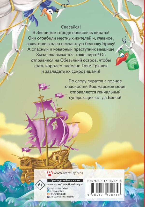 Skrieniet, lai glābtu savas dzīvības! Dzīvnieku pilsētā ir parādījušies pirāti! Viņi aplaupīja vietējos iedzīvotājus un, pats galvenais, sagūstīja nelaimīgo vāveri Brjaku! Un izrādās, ka bīstamā un nodevīgā noziedzīgā pele Zyza arī ir pirāte! Viņš ir devies uz pērtiķu salu, lai kļūtu par Rags cilts karali un sagrābtu viņu dārgumus! Brīnišķīgais superdetektīvs Da Vinči kaķis ir uz pēdām pirātiem bīstamajā Nakts murgu jūrā!