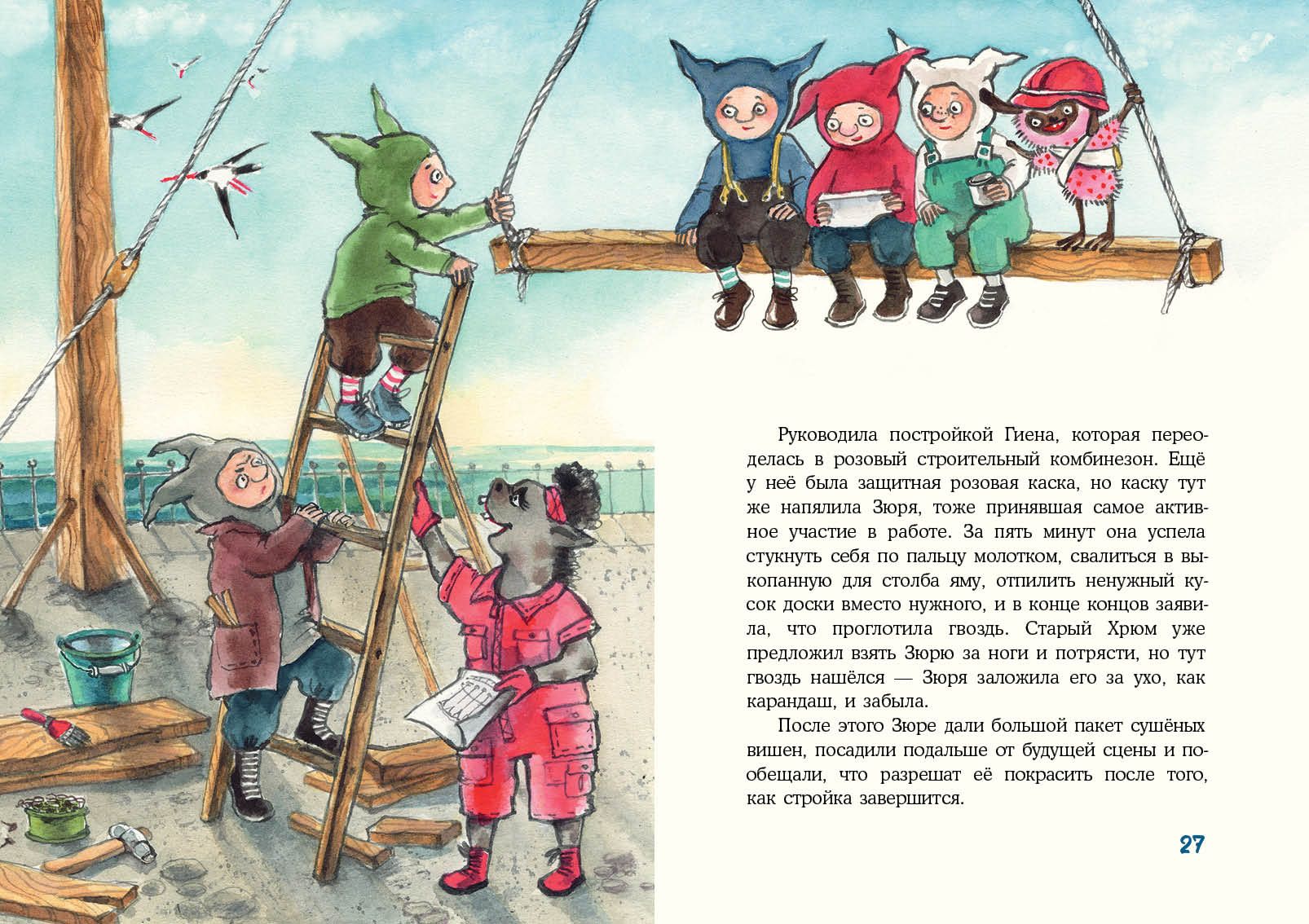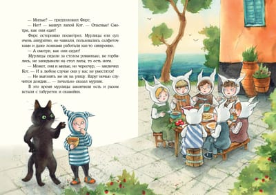 Piejūras krastā atrodas skaista pilsētiņa, kurā dzīvo kaķi, kaķēni un purni. Tur, vecā bākā, dzīvo mūsu varoņi - kaķis un murgojošs kaķis vārdā Firss. Nesen arī mazā Zirja, par kuru gandrīz nekas nav zināms - pat to, kādas krāsas viņa patiesībā ir. Kādu saulainu rītu Zjurja ieraudzīja pie krasta pietauvojušos laivu. Laivā sēdēja purniņi, bet daži dīvaini - kleitās un ar mūzikas instrumentiem, visi tik stingri, labi audzināti un ļoti organizēti. Un, spriežot pēc izskata, neviens viņus nebija gaidījis... Izrādījās, ka tie bija murlīnzirgi! Viņi bija ieradušies sniegt koncertu, bet visas melodijas skanēja tik garlaicīgi un garlaicīgi! Lai glābtu situāciju, Zjūrija ņem lietas savās rokās - taču viņa nav vienīgā, kas nolemj iejaukties notikumu gaitā... Kā beigsies šis koncerts un kas patiesi pārsteigs mūsu draugus? Ārkārtīgi spilgtas un aizkustinošas ilustrācijas grāmatai ir radījusi talantīgā māksliniece Tatjana Gluščenko.