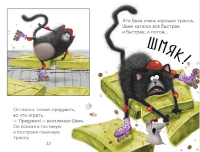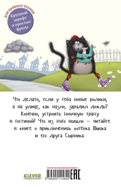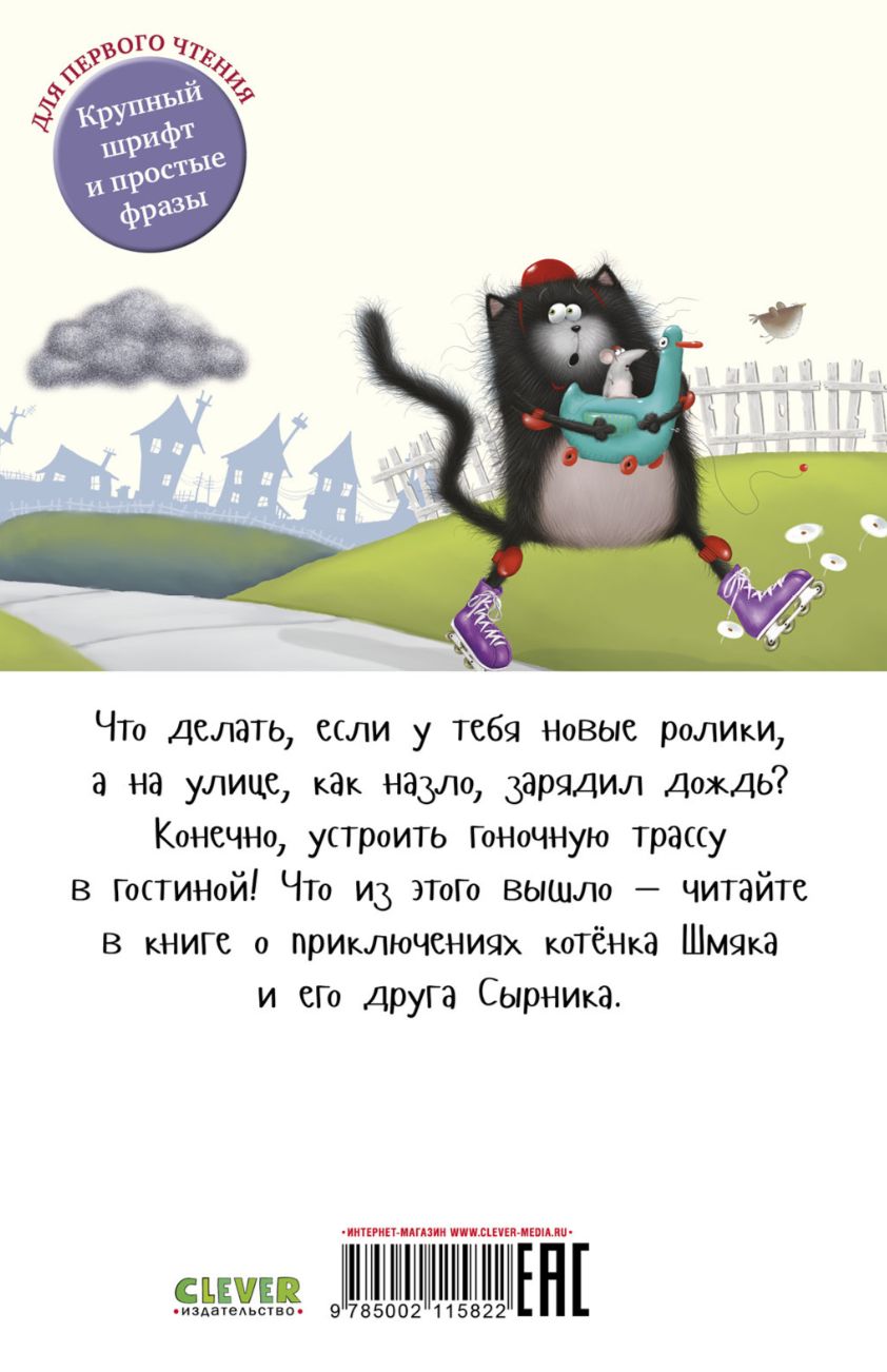 Ko darīt, ja esat ieguvis jaunus veltņus un ārā līst lietus? Jūs, protams, varat uzstādīt sacīkšu trasi dzīvojamā istabā. Šajā grāmatā lasi par kaķēna Šmjaka un viņa drauga Sīrnika piedzīvojumiem.
