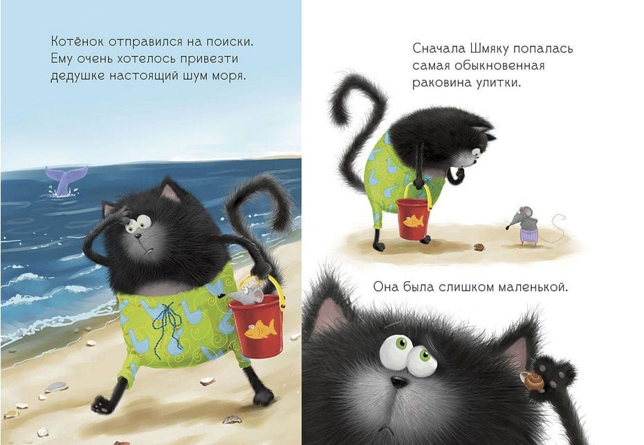 Kotu ģimene dodas atvaļinājumā. Šmuks sapņo atrast jūras gliemežvāku ar jūras šalkoņu un atnest to vectēvam. Taču visas gliemežvāki pludmalē ir salauzti un sasisti. Vai viņa mīļākais vectēvs paliks bez dāvanas?