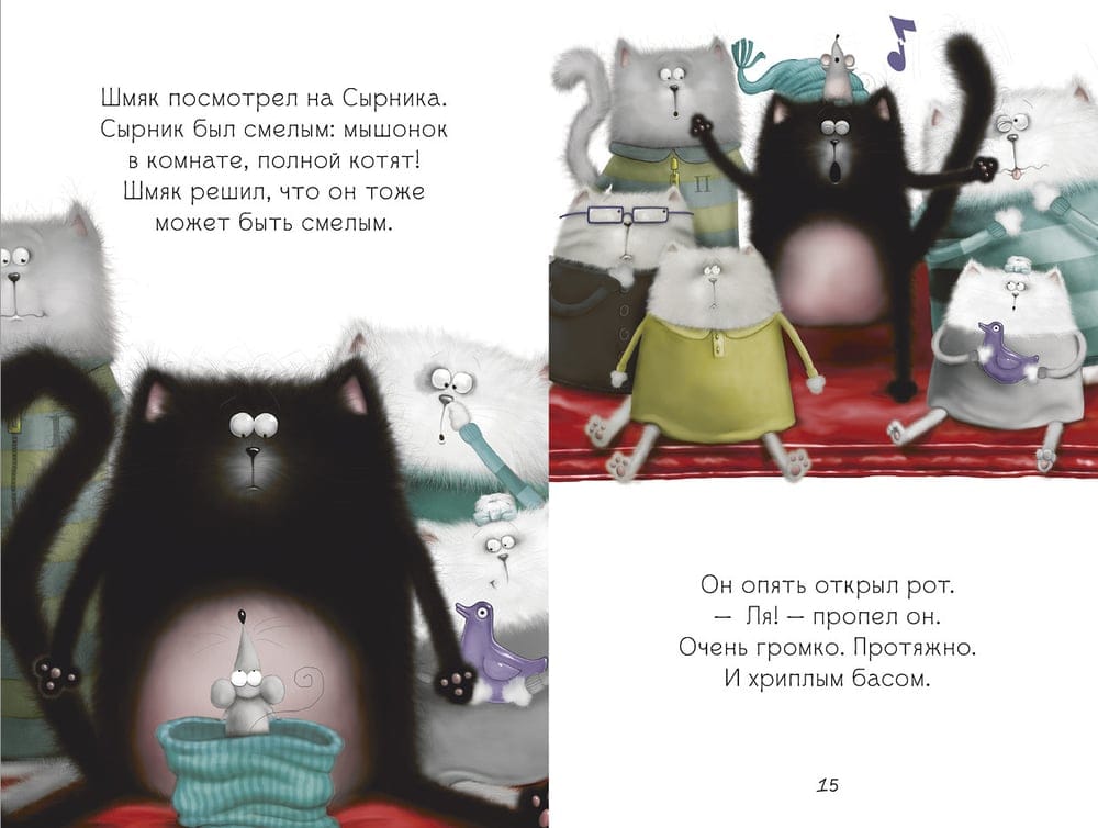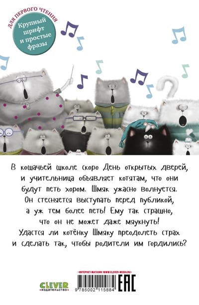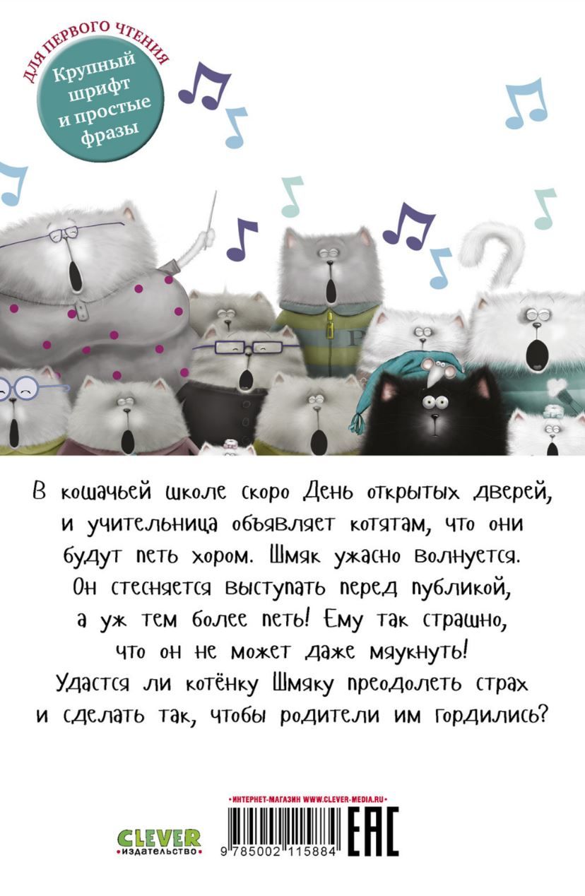 Kaķu skolā tuvojas atvērto durvju diena, un skolotāja paziņo kaķēniem, ka viņi dziedās korī. Šmuciņš briesmīgi uztraucas. Viņam ir neērti runāt publikas priekšā, vēl jo mazāk dziedāt. Viņš ir tik nobijies, ka pat nespēj miaukt. Vai Šmjakam izdosies pārvarēt bailes un likt vecākiem lepoties?
