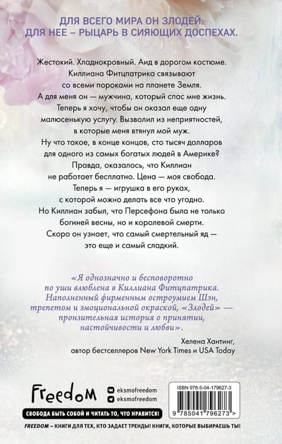 Nežēlīgs. Aukstasinīgs. Hādess dārgā uzvalkā. Kilians Ficpatriks ir saistīts ar visiem netikumiem uz planētas Zeme. Un man viņš ir cilvēks, kurš izglāba manu dzīvību. Tagad es vēlos, lai viņš man izdara vēl vienu mazu pakalpojumu. Izvestu mani no ķezas, kurā mani ievilka mans vīrs. Kas gan ir simts tūkstoši dolāru vienam no bagātākajiem vīriešiem Amerikā? Izrādās, ka Kilians nestrādā bez maksas. Cena ir mana brīvība. Tagad esmu rotaļlieta viņa rokās, ar kuru viņš var darīt, ko vien tīk. Bet Kilians ir aizmirsis, ka Persefone bija ne tikai pavasara dieviete, bet arī nāves karaliene. Viņš tūlīt uzzinās, ka visbīstamākā inde... ir arī vissaldākā.