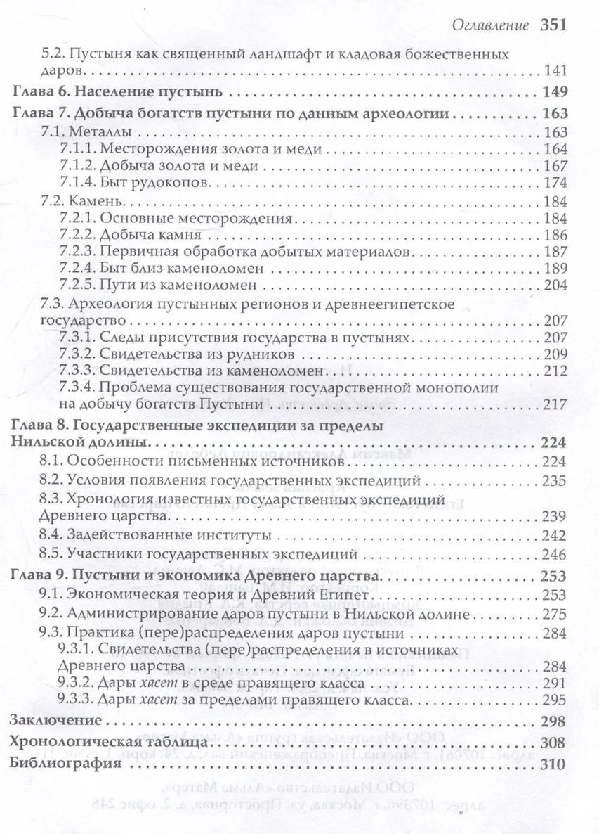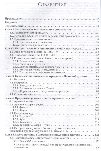 Ēģiptes un Sudānas mūsdienu tuksnešu izpētes posmi, Nīlas ieleju ieskaujošo teritoriju ģeoloģija, senās ainavas un klimats. Tradicionāli speciālistu izmantotie rakstītie un gleznieciskie avoti tiek ieviesti zināmo arheoloģisko pieminekļu kontekstā. Tiek apspriesta karalisko ekspedīciju organizēšanas prakse un apstākļi aiz Nīlas ielejas, kā arī tuksneša bagātību ietekme uz senās Ēģiptes sabiedrības ekonomiku, politiku un sociālo attīstību.