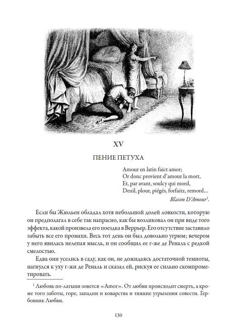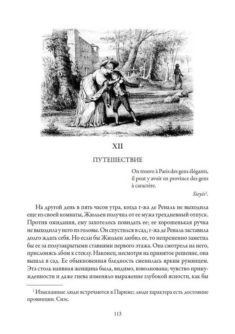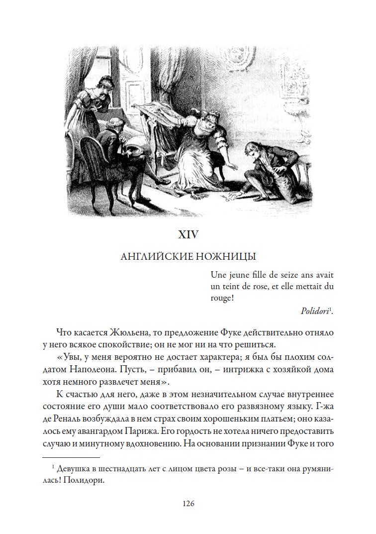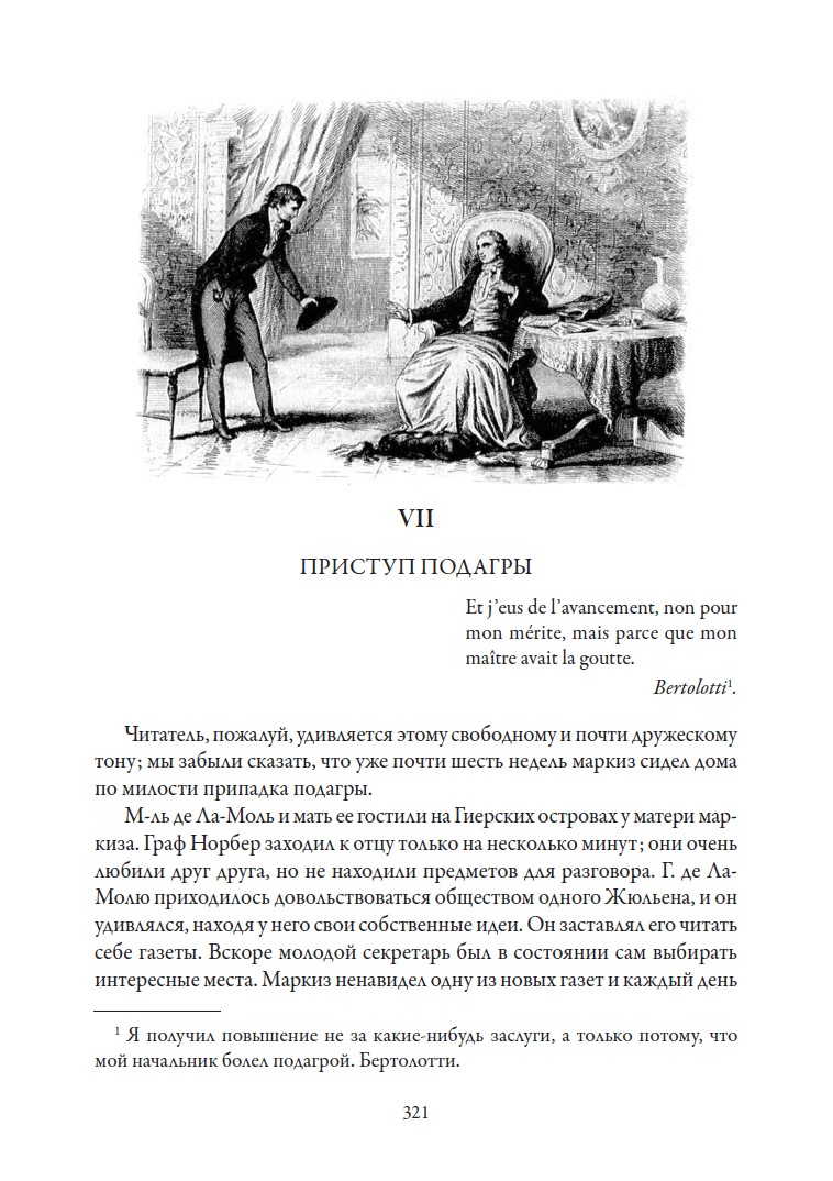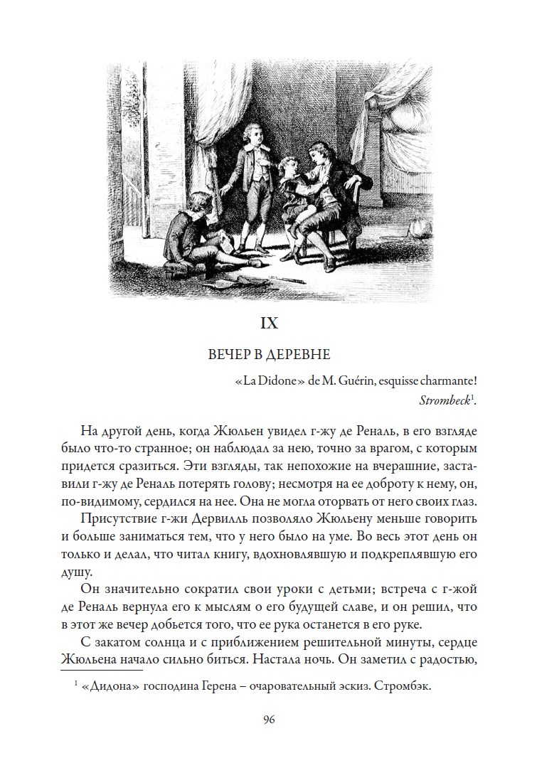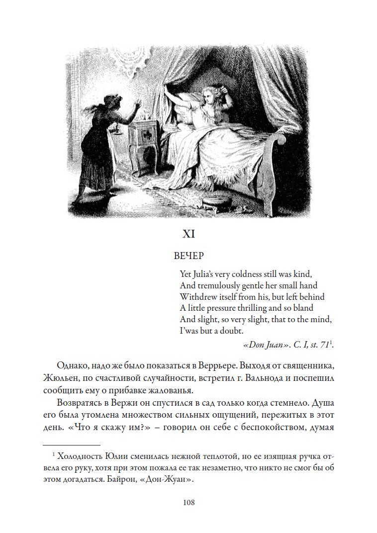 Romāns "Sarkans un melns" par ambicioza jaunieša Žuljēna Surela likteni pelnīti tiek uzskatīts par franču rakstnieka Frederika Stendāla (1783-1842) literāro šedevru. Anatolija Vinogradova tulkojums tiek pārpublicēts pirmo reizi kopš 1928. gada. Izdevumu rotā 19. gadsimta franču mākslinieka un grafiķa Anrī Žozefa Dubušē ilustrācijas. Pirms romāna teksta ir A. V. Lunačarska priekšvārds un plaša A. Vinogradova eseja par Stendāla dzīvi un daiļradi.