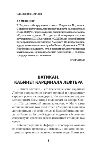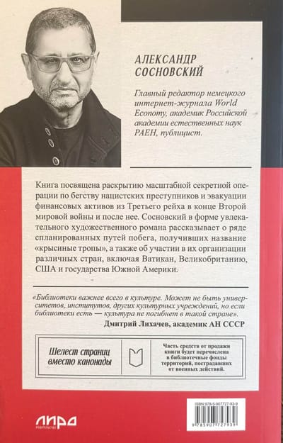 Šī grāmata pēta vērienīgo slepeno operāciju nacistu noziedznieku un finanšu aktīvu evakuācijai no Trešā reiha Otrā pasaules kara beigās un pēc tā. Aizraujoša romāna formātā Sosnovskis atstāsta virkni plānotu bēgšanas maršrutu, kas dēvēti par "Ratlines", un dažādu valstu, tostarp Vatikāna, Lielbritānijas, Amerikas Savienoto Valstu un Dienvidamerikas valstu, iesaistīšanos to organizācijā.