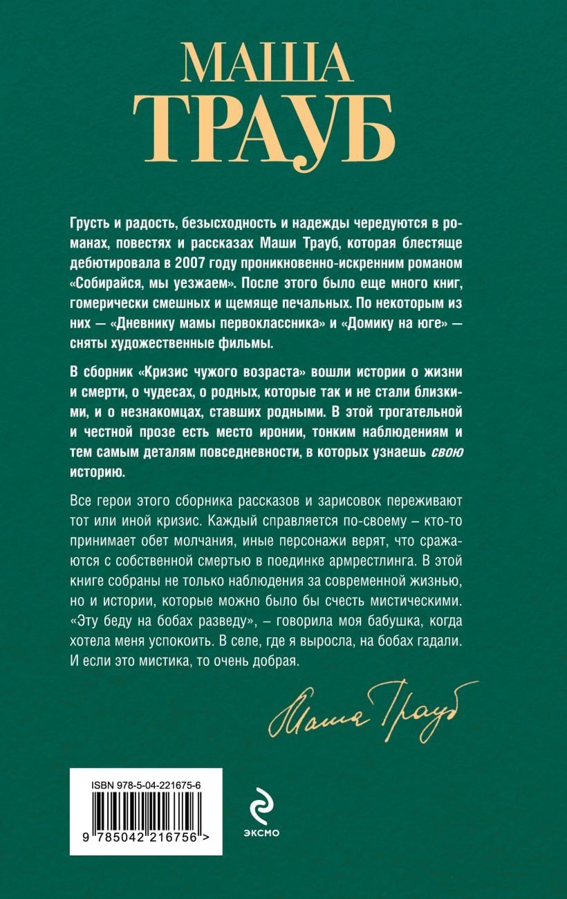 Krājumā “Cita laikmeta krīze” ir iekļauti stāsti par dzīvi un nāvi, par brīnumiem, par radiniekiem, kas nekad nekļuva tuvi, un par svešiniekiem, kas kļuva par ģimeni. Šajā aizkustinošajā un godīgajā prozā ir vieta ironijai, smalkiem novērojumiem un tieši tām ikdienas dzīves detaļām, kurās atpazīsti savu stāstu.