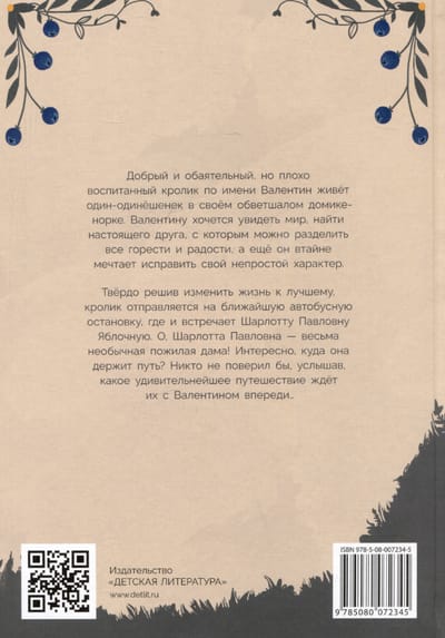 Laipns un burvīgs, tomēr slikti audzināts trusis vārdā Valentīns dzīvo viens pats savā nolaistā alā. Valentīns ilgojas redzēt pasauli, atrast īstu draugu, ar kuru dalīties visās bēdās un priekos, un slepeni sapņo uzlabot savu sarežģīto raksturu. Apņēmies mainīt savu dzīvi uz labo pusi, trusis dodas uz tuvāko autobusa pieturu, kur satiek Šarloti Pavlovnu Jabločnaju. Ak, Šarlote Pavlovna – neparasta vecene! Interesanti, kurp viņa dodas? Neviens neticētu, ja dzirdētu, cik brīnišķīgs ceļojums viņu un Valentīnu sagaida...
