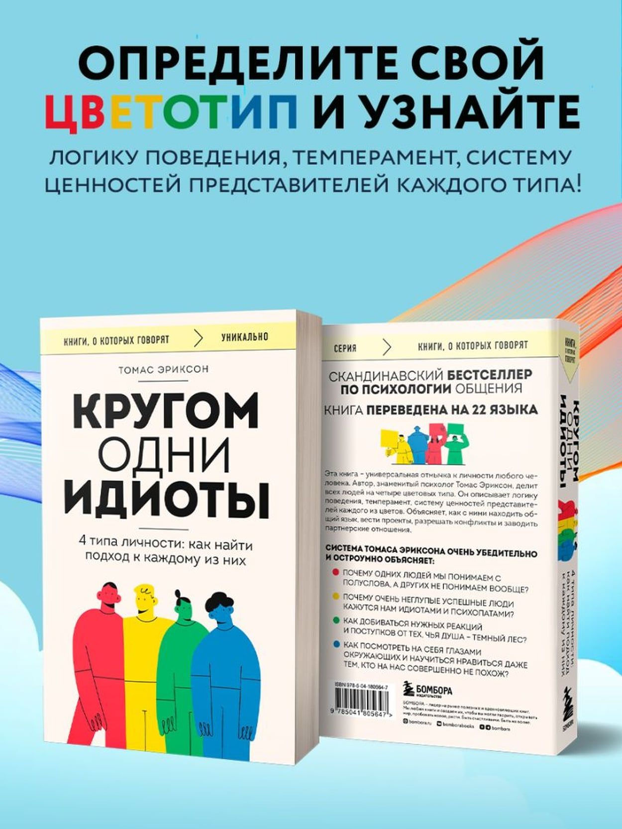 Grāmata ir balstīta uz vienkāršu cilvēku rakstzīmju krāsu rakstīšanas metodi. Zviedru psihologs Tomass Eriksons visus cilvēkus iedala četros tipos: sarkanā, dzeltenā, zaļā, zilā – un ļoti izklaidējoši, izmantojot atpazīstamus piemērus, apraksta katra tipa pārstāvju uzvedības loģiku, temperamentu, vērtību sistēmu. Šķiet, ka nav nekā jauna. Šo pieeju psihologi izmanto jau vairākus gadu desmitus. Taču Tomasam Ēriksonam izdevās izdomāt tik ērtu sistēmu darbam ar labi zināmiem rīkiem, ka šodien grāmata “Idiotu ieskauta” ir uz katra Zviedrijas vadītāja, skolotāja un žurnālista galda.