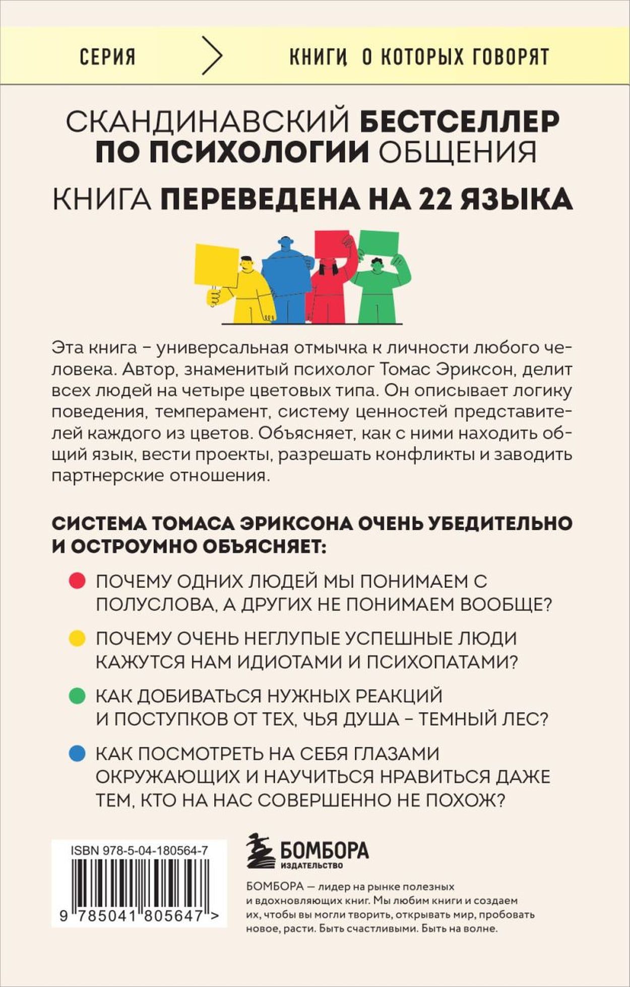 Pirmkārt, grāmata māca saprast tos, kurus ir absolūti neiespējami saprast – cilvēkus ar domāšanas veidu, temperamentu un vērtību sistēmu, kas maksimāli atšķiras no mūsējās. Šo grāmatu var saukt par universālu jebkuras personas personības galveno atslēgu. Tomass Eriksons ne tikai palīdz saprast, kas notiek kāda cita galvā un dvēselē, bet arī ļauj saprast, kā citi tevi uztver.