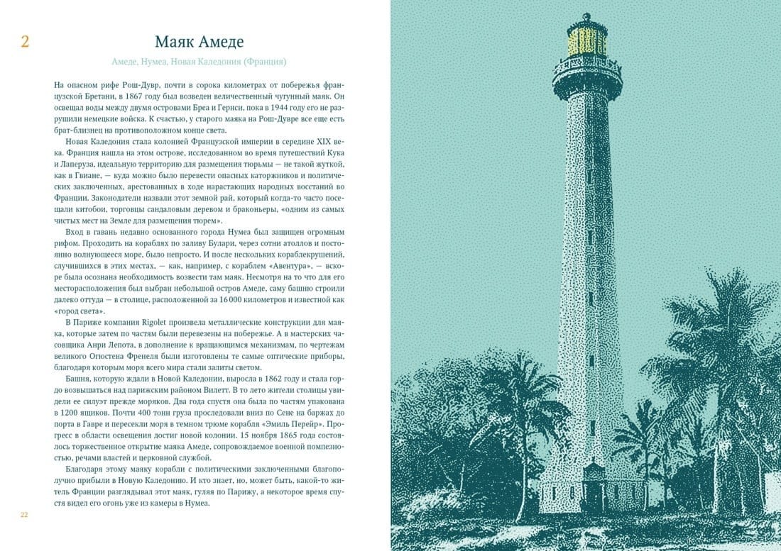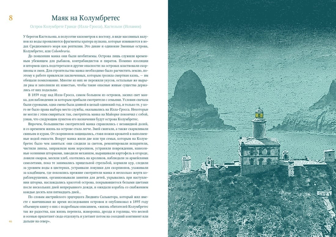 Šajā neparastajā ceļojumā uz visattālākajām bākām uz planētas jūs uzzināsiet ne tikai par to arhitektūras iezīmēm, iekšējo uzbūvi un tehnisko aprīkojumu, bet arī par daudziem aizraujošiem stāstiem, kas saistīti ar bāku celtniecību un to sargiem, kuģu avārijām un mistiskiem notikumiem. Šis ir stāsts par neredzīgu bākas sargu polārajā lokā, par bezbailīgu meiteni, kas nāca palīgā nelaimē nonākušiem jūrniekiem, par mičmena spoku, kas katru nakti parādās bākā un rakstāmmašīnā uzraksta brīdinājumu, par dīvainu vīrieti, kurš deva priekšroku slēpties no visiem tornī atklātā jūrā... Šie stāsti saplūst ar Žila Verna, Edgara Alana Po, Virdžīnijas Vulfas, kura bērnību pavadīja bākā, Radjarda Kiplinga, Reja Bredberija un citu izcilu rakstnieku, kuri centās pasaulei pastāstīt par vientulību, nemieru, drosmi un laimi, motīviem un radošajiem apvāršņiem. Tekstu papildina krāšņas ilustrācijas, jūras kartes un mēroga plāni, kuros norādītas precīzas bāku koordinātas un to tehniskie parametri - katras bākas diagramma griezumā, norādītas tās precīzas koordinātas un gaismas signāla parametri, norādīts inženieris, būvniecības un nodošanas ekspluatācijā laiks, norādīts, vai bāka pašlaik darbojas vai ir pamesta, kāds ir tās torņa augstums, ugunsgrēka augstums virs jūras līmeņa, ugunsgrēka redzamības diapazons un sniegtas arī daudzas citas interesantas detaļas.
