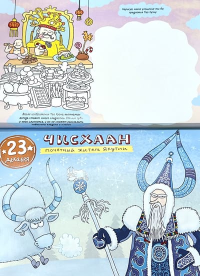 Santa Klauss un Ziemassvētku vecītis, Pērs Noels un Joulupukki, Vess Dade, Mun Kalsa un, protams, Tēvs Sals - šajā Adventes kalendārā jūs sastapsiet trīsdesmit vienu ziemas burvi no visas pasaules un dažādām Krievijas daļām. Sagaidiet Jauno gadu Aleksandra Golubeva zīmējumos kopā ar Ziemassvētku vecīšiem no visas pasaules un aizraujošiem uzdevumiem katrai decembra dienai!