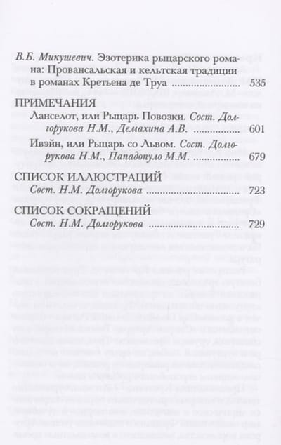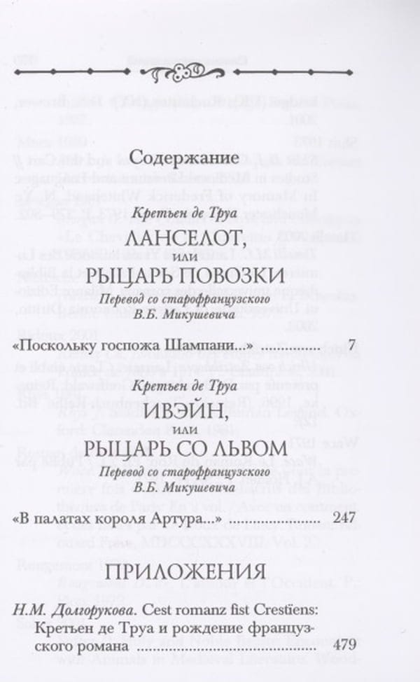 Hretiena de Troyes vārdu tagad zina, iespējams, visi, kas kaut nedaudz pārzina viduslaiku literatūru. Pats “viduslaiku” jēdziens cieši saistās ar šī šampanieša trubadūra, Francijas Marijas galma rakstnieka, darbību un bez viņa darbiem par karali Artūru un Apaļā galda bruņinieku brālību par gaišmataino Izoldi un drosmīgo Tristanu, par piekrāpto karali Marku un vēlamo un tālāko Eiropas grailu, viss būtu bijis neiespējams un nesasniedzams. Chretien de Troyes bruņniecības romāni radīja bagātīgu tradīciju, daudzus pielāgojumus un atdarinājumus. Viņu ietekme caurstrāvo visu turpmāko galma rakstību Francijā, atbalsojas poēmā "Sirs Gawains un Zaļais bruņinieks" un ir jūtama pat Tomasa Malorija "Artūras spārnā", un to radītājs, laulības pārkāpšanas un galma mīlestības dziedātājs eiropietis Kretjēns de Trojs, pamatoti tiek uzskatīts ne tikai par bruņniecības radītāju, romantiku, kā arī ne tikai romānika radītāju. Kretjēna darbi ir daudzlīmeņu teksti, kuros savādi ir apvienots lirisks un episks, piedzīvojumu un garīgais, Oksitāņu Francijas pasaule un pasaku utopija par Artūra valstību, kas radusies neatminamiem laikiem. Artūrs valda tikai tur, kur pastāv patiesa bruņniecība. Stingri saistot ar ķeltu mitoloģiju, mums tiek piedāvāta fantasmagoriska pasaule, kas ir paralēla reālajai, kurā bruņinieka izskatā apvienoti drosmīga bretoņu karotāja, ķeltu gaismas dieva un kristiešu svētā askēta vaibsti, bet mīļotā tēlā - 12. gadsimta Eiropas dāmas un ķeltu burvju avota sargnieces vaibsti. 1980. gadā sērijā Literatūras pieminekļi tika publicēti divi Kretiena romāni Klijē un Ereks un Enide. Šis izdevums ir sava veida otrais Kretiena sējums, kurā ir iekļauti viņa divi citi romāni (no trim atlikušajiem), Lanselots un Ivains, kurus pilnībā tulkojis V. B. Mikušēvičs, viens no izcilākajiem pašmāju tulkotājiem. Agrāk "Yvain" jau bija publicēts viņa tulkojumā - 1974. gadā "Pasaules literatūras bibliotēkā", lai gan tika tulkota tikai daļa no šī romāna. Šoreiz "Īvainas" tulkojums būtībā tika veikts no jauna. N.M. pavadošie raksti radīs ievērojamu interesi. Dolgorukova un V.B. Mikušēvičs, cieši saistot Hretiena de Troyes daiļradi ne tikai ar literāro tradīciju, Francijas Vasa un Marijas daiļradi, bet arī ar veselu garīgās kultūras slāni, sākot ar albīģiešu un maniheju mācībām un beidzot ar Frīdriha Nīčes slavēto trubadūru “priecīgo zinātni”. Detalizēti un plaši komentāri, kā arī retas krāsainas ilustrācijas palīdzēs uztvert Kretiena tekstus, iedziļināties viņa laikmetā un izjust tā atmosfēru.