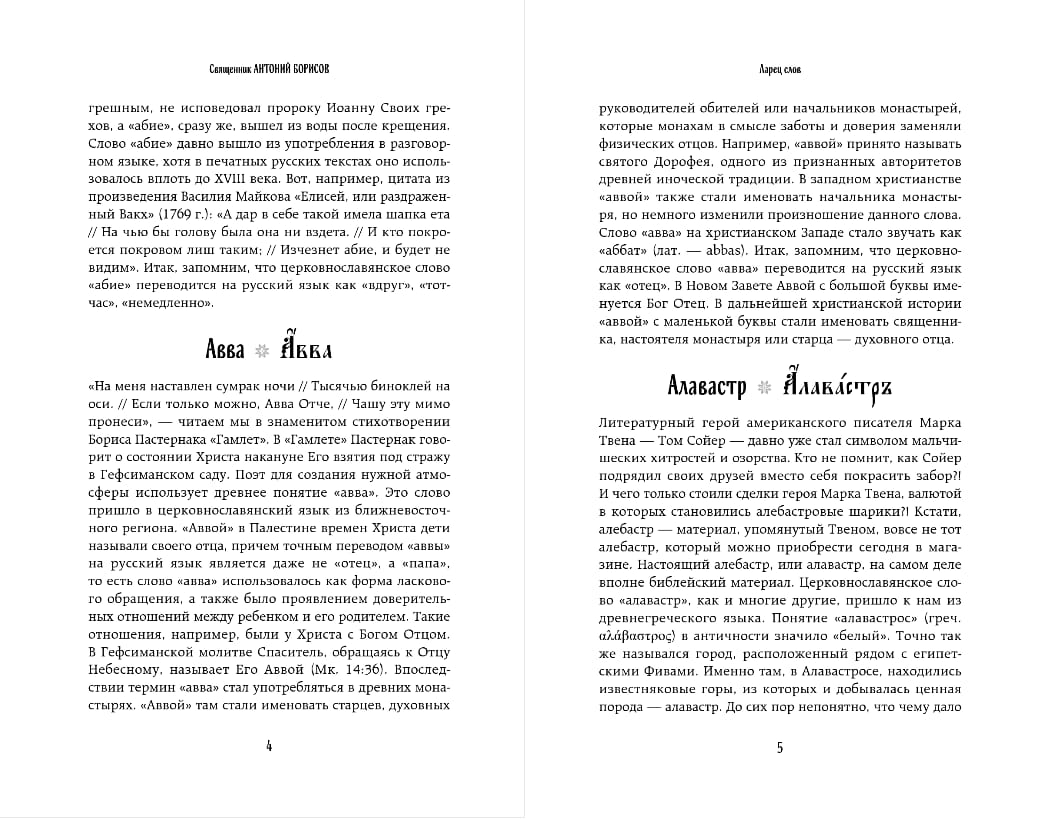 Priesteris Antonijs Borisovs atklāj mums baznīcas slāvu valodas noslēpumus. Vārdi pārstāj būt tikai pagātnes artefakti un kļūst tuvi un saprotami. Liturģijas atbalss skan citādi, paveras gudrības un svēto balsu pasaule. Šī nav tikai grāmata. Tā ir pieredze, kurā valoda atklājas kā dzīvs kultūras audums, kā dievišķa gaisma, kas laužas cauri laika slāņiem.