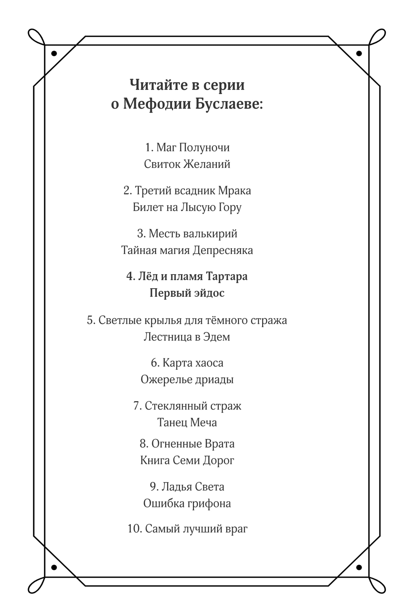 Septītajā grāmatā "Tartara ledus un uguns" Metodijs stājas pretī šausminošajiem Tartaras jātniekiem, Dafne pēkšņi kļūst par parastu pusaudzi, un vientuļajai Valkīrai ir jāizvēlas starp saviem principiem un briesmām atkal nonākt ratiņkrēslā. Gaidāma smaga cīņa, taču tumsa Ligula personā nekādā gadījumā nav Metodija Buslajeva pusē.