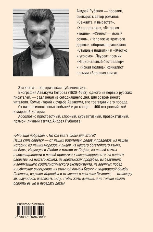 Andrejs Rubanovs ir prozaiķis, scenārists, romānu "Augs un augs", "Hlorofilija", "Gatavojieties karam", "Finists skaidrais sokols", "Mahogani vīrs" un īsprozas krājumu "Kaunpilnie varoņdarbi" un "Cietais un drūmais" autors. Nacionālā bestsellera un Jasnaja Poļjanas balvas laureāts, Lielās grāmatu balvas finālists.