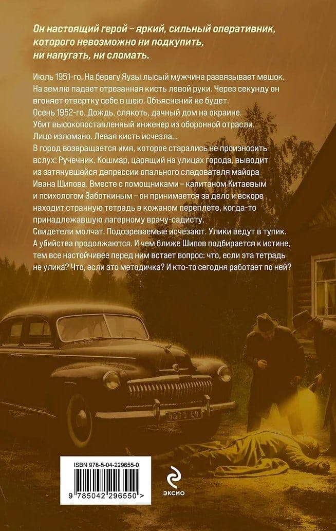 Murgs, kas valda pilsētas ielās, izved apkaunoto izmeklētāju majoru Ivanu Šipovu no ilgstošas depresijas. Kopā ar saviem palīgiem — kapteini Kitajevu un psihologu Zabotkinu — viņš ķeras pie lietas un drīz vien atrod dīvainu ādas vāka piezīmju grāmatiņu, kas kādreiz piederējusi sadistiskam nometnes ārstam. Liecinieki klusē. Aizdomās turamie pazūd. Norādes ved strupceļā. Un slepkavības turpinās. Un jo tuvāk Šipovs nonāk patiesībai, jo neatlaidīgāk viņš saskaras ar jautājumu: ja nu šī piezīmju grāmatiņa nav pierādījums? Ja nu tā ir rokasgrāmata? Un kāds šodien ar to strādā?