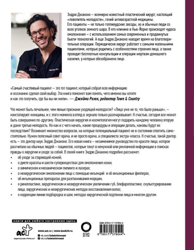 "Vislaimīgākais pacients ir tas, kurš ir apkopojis visu informāciju un izdarījis apzinātu izvēli. Šī grāmata palīdzēs jums noskaidrot, ko tieši vēlaties un kā to iegūt, neatkarīgi no tā, kur dzīvojat."-Jamie Rosen, redaktors, Town & amp; Country Kas var būt skumjāks par aizejošās jaunības pazīmēm? "Seja vairs nav tāda, kāda tā bija," paziņo sievietes, un no šī brīža skatīšanās spogulī rada tikai vilšanos. Par laimi, šodien viss var būt pavisam citādi. Plastiskā ķirurģija un kosmetoloģija ikvienam var dāvāt otro un pat trešo jaunību. Bet kā un kur sākt, kādas procedūras un operācijas veikt, kādas būs to sekas? Rodas daudzi jautājumi, uz kuriem potenciālais pacients pats nespēj atbildēt. Jums ir nepieciešams noderīgs ārsta padoms, un ne tikai ārsta, bet ekstra klases speciālista padoms. Par laimi, šāds ārsts ir - tas ir Andrew Giacono, PhD. Viņa jaunā grāmata ir neaizstājams sejas skaistuma ceļvedis, kas domāts parastiem cilvēkiem - pacientiem, kuri, meklējot patiesību par ķirurģiju un pašaprūpi, slīgst nevajadzīgā vai reklāmas informācijā. Savā grāmatā Endrjū Džakono sīki izklāstīs:- par novecojošas ādas kopšanu - skaistumkopšanas diētu un sešiem superproduktiem ādas atjaunošanai - ķīmiskajiem un mehāniskajiem pīlingiem un lāzeriem - neķirurģisko sejas ādas atjaunošanu ar injicējamām vielām un injekciju pildvielām - injicējamām grumbu procedūrām - rinoplastiku, ķirurģiska un neķirurģiska lūpu palielināšana, blefaroplastika, sejas skulpturēšana, ķirurģiskas neķirurģiskas matu atjaunošanas metodes - zoda un kakla līnijas korekcija, ķirurģiskas sejas liftinga metodes un citas.Andrew Giacono - medicīnas doktors, pasaules plastiskais ķirurgs, īsts novecošanās novēršanas ķirurģijas ģēnijs, viens no pasaules labākajiem ķirurgiem. Kurš cits, ja ne Dr. Giacono var sniegt patiesi vērtīgus padomus un dalīties savā pieredzē. Viņa pacienti ir ne tikai Holivudas zvaigznes, bet arī cilvēki no visām pasaules malām. Endrjū Džakono atrod laiku arī labdarības operācijām. Laiku pa laikam ķirurgs strādā ar pašiem mazākajiem pacientiem, kuri piedzimuši ar sejas uzbūves īpatnībām. Viņš operē sarežģītus zaķveidīgo gadījumus - un mudina tos, kam tas rūp, ziedot naudu fondiem, lai palīdzētu bērniem ar šādām iezīmēm.