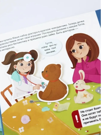 Grāmatas "Pie ārsta" lappusēs jūsu bērns un Maša satiks oftalmologu, otolaringologu un ķirurgu, uzzinās, kāda ir pediatra un zobārsta vizīte, un atklās, ka ārsti ir laipni un nemaz nav biedējoši. Katrā lappusē jūsu mazo gaida izglītojošas aktivitātes. Šī bērnu spēļu grāmata tiek piegādāta izjaukta, lai jūs varētu izveidot savu aizraujošo grāmatu. Tā satur 12 krāsainas lappuses, kas iemācīs jums kārtot un pārkārtot objektus, savienot pārus un izpētīt apkārtējo pasauli. Šī izglītojošā rotaļlieta ar Velcro būs vienlīdz saistoša gan zēniem, gan meitenēm.