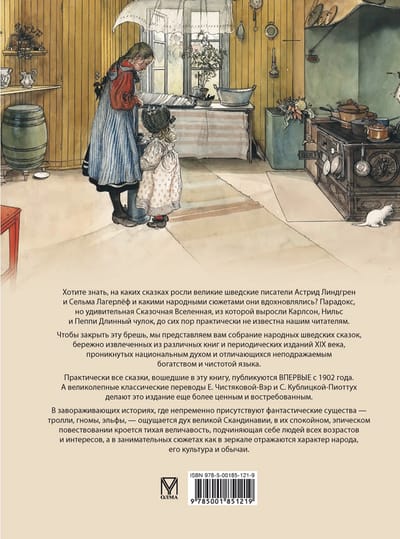 Vai vēlaties uzzināt, ar kādām pasakām uzaugušas lielās zviedru rakstnieces Astrida Lindgrēna un Selma Lāgerlēfa un no kādām tautas pasakām viņas iedvesmojušās? Paradoksāli, bet brīnišķīgais Pasaku Visums, no kura izauga Karlsons, Nilss un Pipi garā zeķe, mūsu lasītājiem joprojām ir lielā mērā nezināms. Lai aizpildītu šo plaisu, piedāvājam jums zviedru tautas pasaku krājumu, kas rūpīgi atlasīts no dažādām 19. gadsimta grāmatām un periodiskajiem izdevumiem, piesātināts ar nacionālo garu un kam raksturīgs neatkārtojams valodas bagātīgums un tīrība. Praktiski visas šajā grāmatā iekļautās pasakas ir publicētas PIRMIŅU reizi kopš 1902. gada. Un krāšņie E. Čistjakovas-Vairas un S. Kubļicas-Piotutas klasiskie tulkojumi. S. Kubļicka-Piottuha padara šo izdevumu vēl vērtīgāku un pieprasītāku. Aizraujošajos stāstos, kuros obligāti sastopamas fantastiskas būtnes - troļļi, rūķi, elfi -, jūtams lielās Skandināvijas gars, to mierīgajā, episkajā stāstījumā slēpjas klusā varenība, kas pakļauj visu vecumu un interešu cilvēkus, un izklaidējošajos stāstos kā spogulī atspoguļojas tautas raksturs, tās kultūra un paražas.